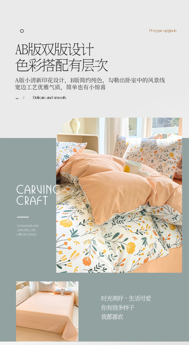 念家居 2025新款直播爆款三件套印花小清新13070全棉四件套 休闲时光