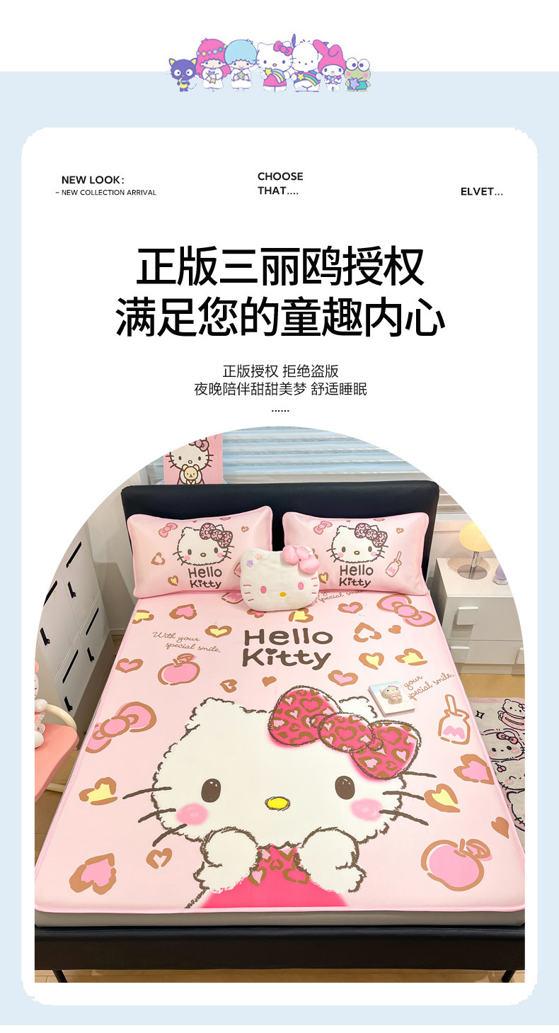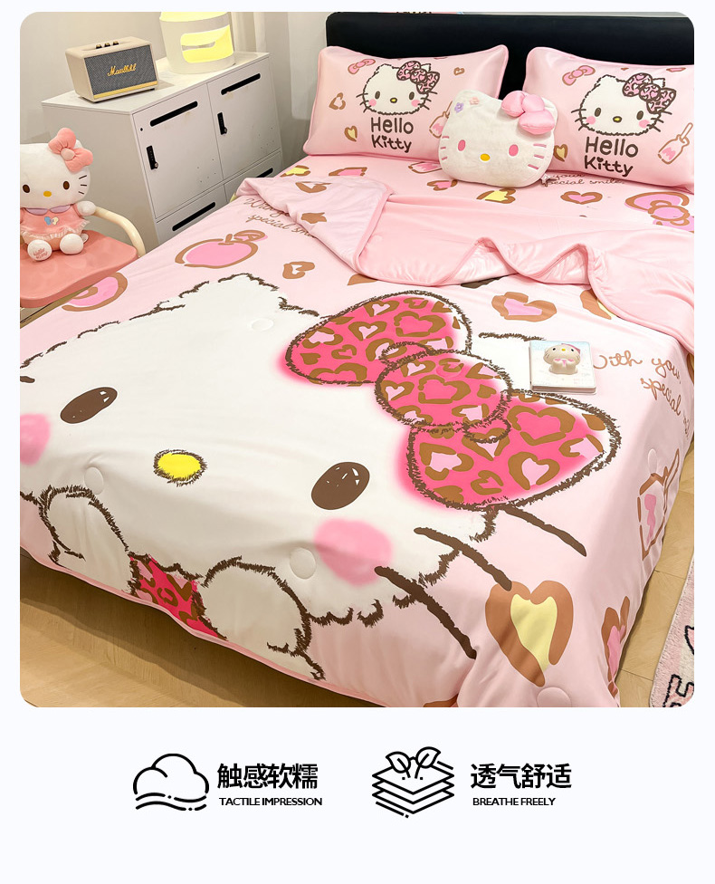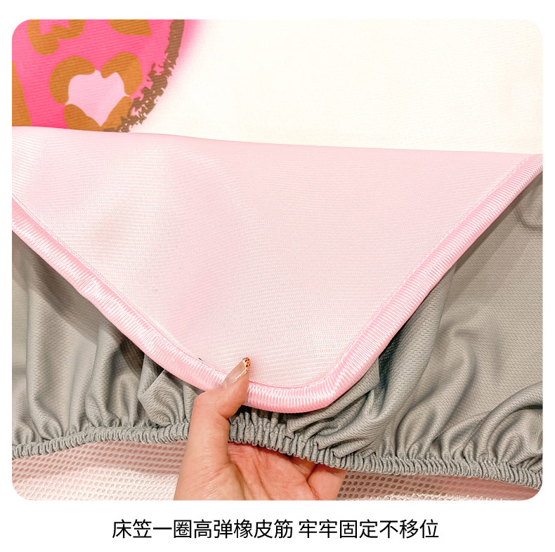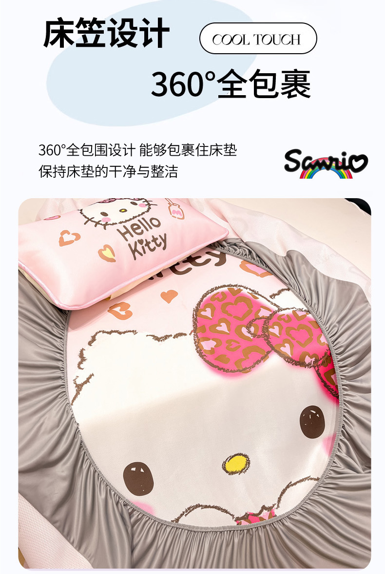 • 91家纺网 家纺一手货源 找家纺 暮思家居 2025新款正版授权A类大版数码印花三丽鸥可机洗1200D冰丝凉席可组合针织棉夏被四件套床笠款 床笠款-豹纹KT猫