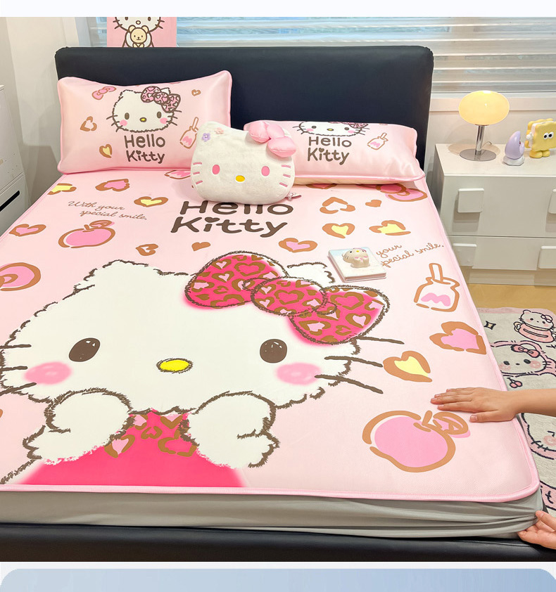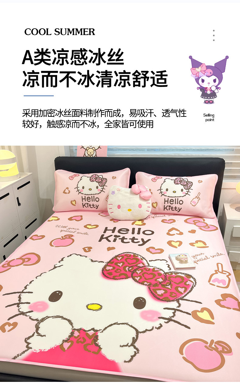 当前位置: 91家纺网 > 商品网购 > 床上用品 > 凉席 > 暮思家居 2025新款正版授权A类大版数码印花三丽鸥可机洗1200D冰丝凉席可组合针织棉夏被四件套床笠款 床笠款-豹纹KT猫