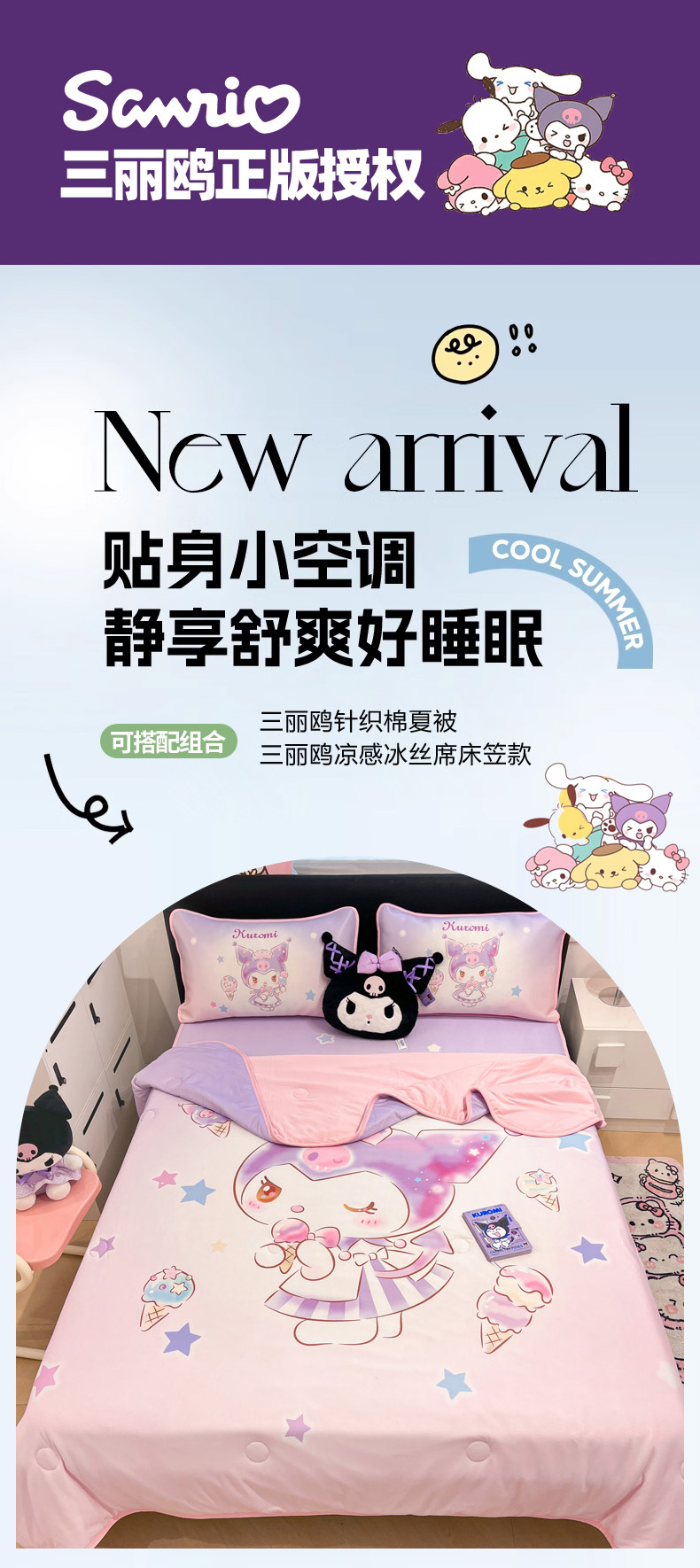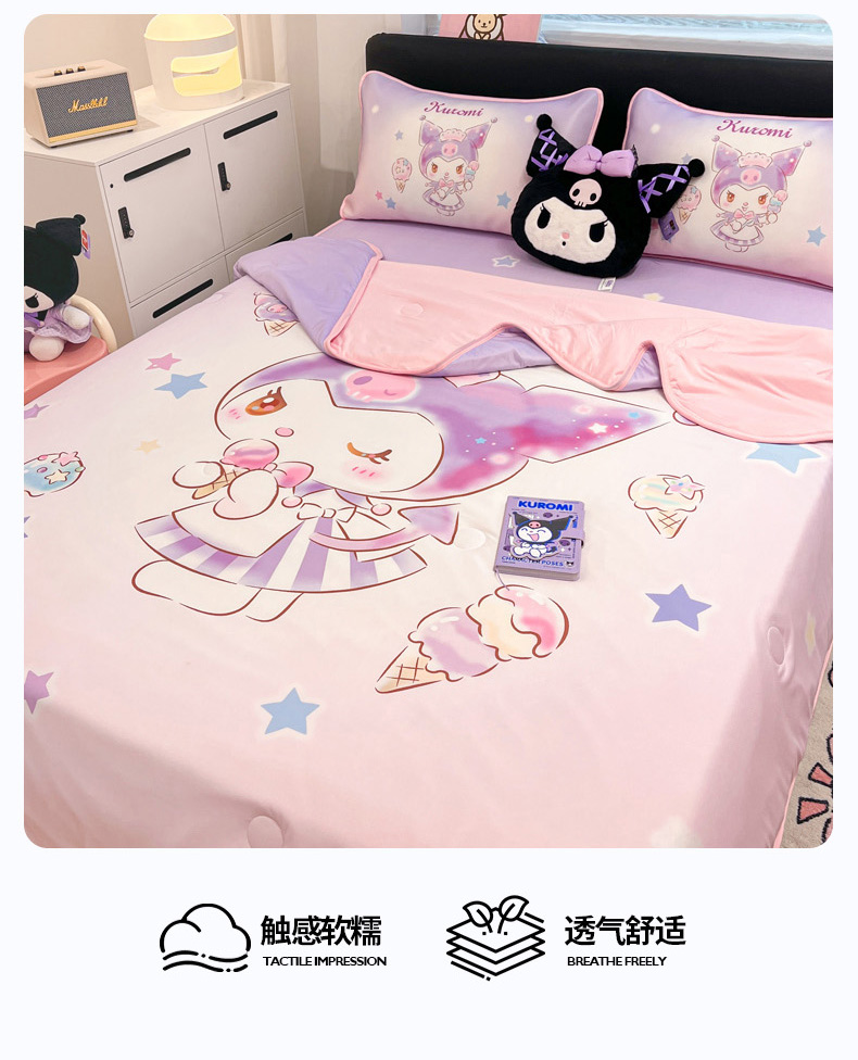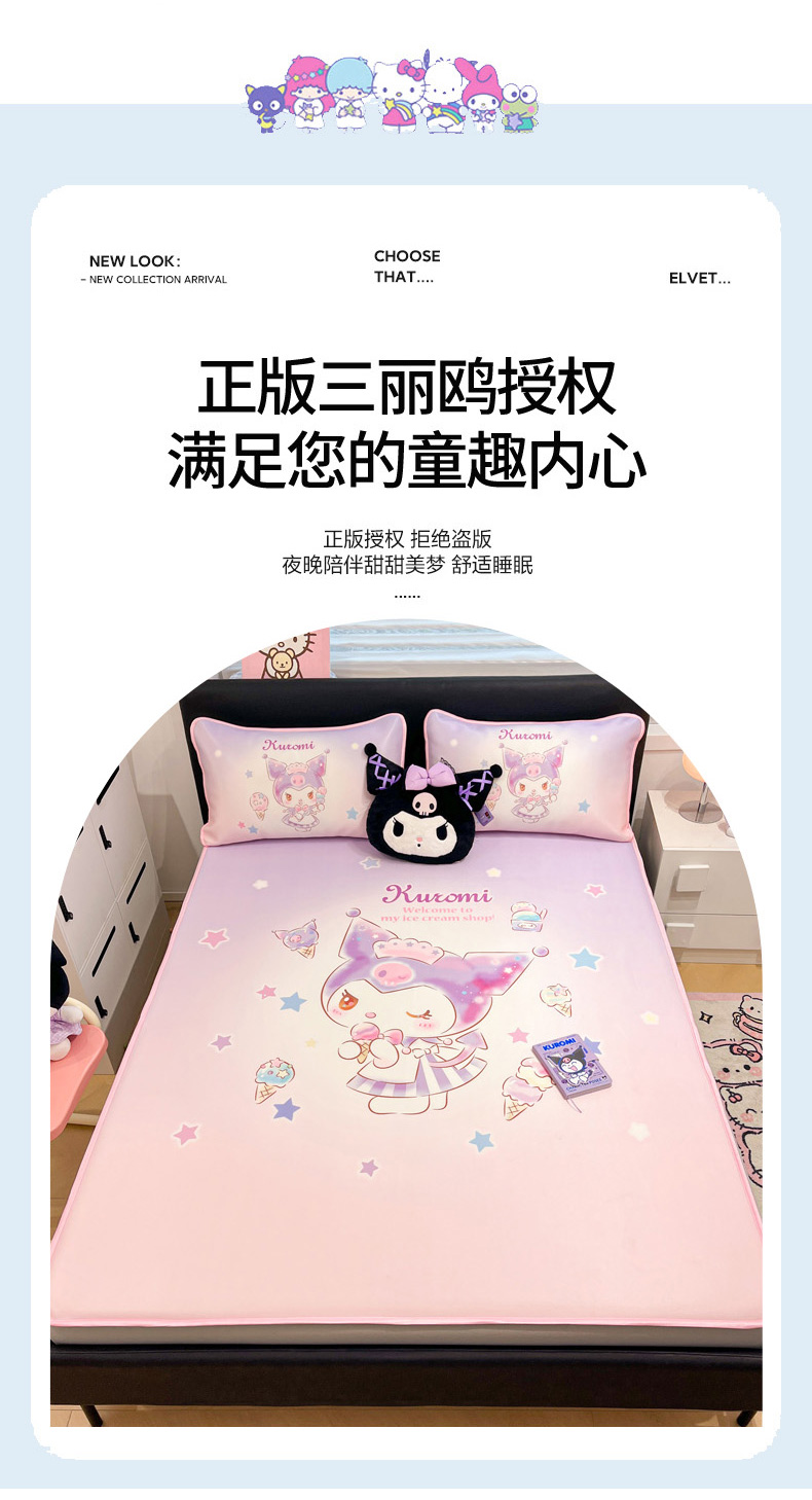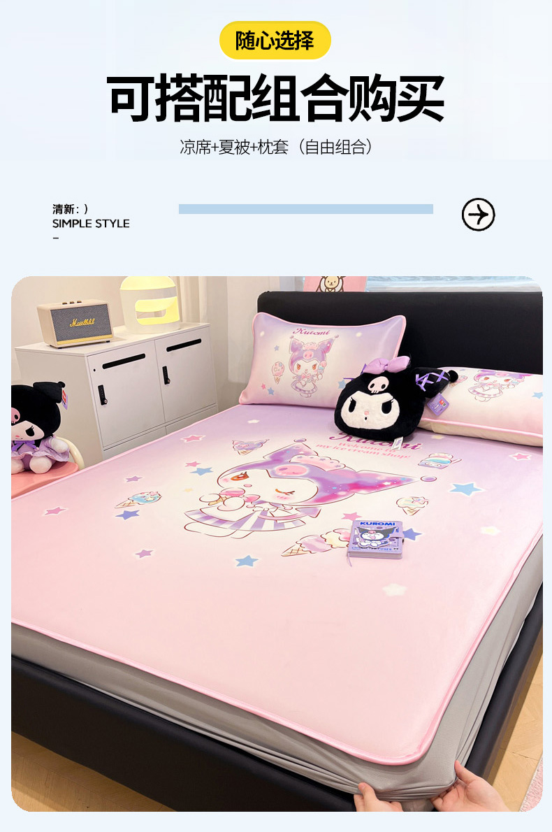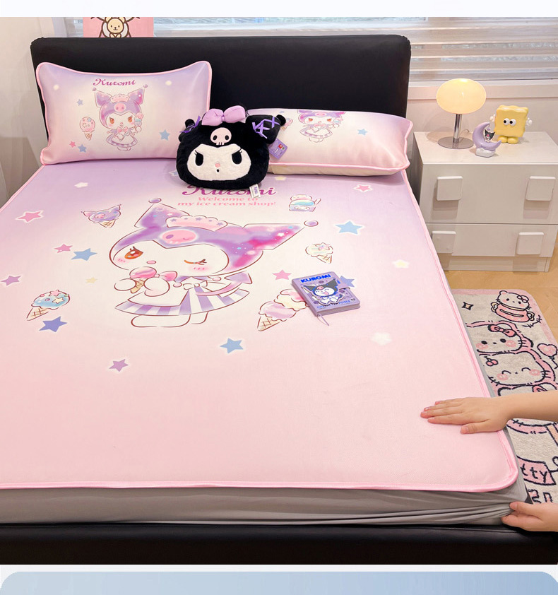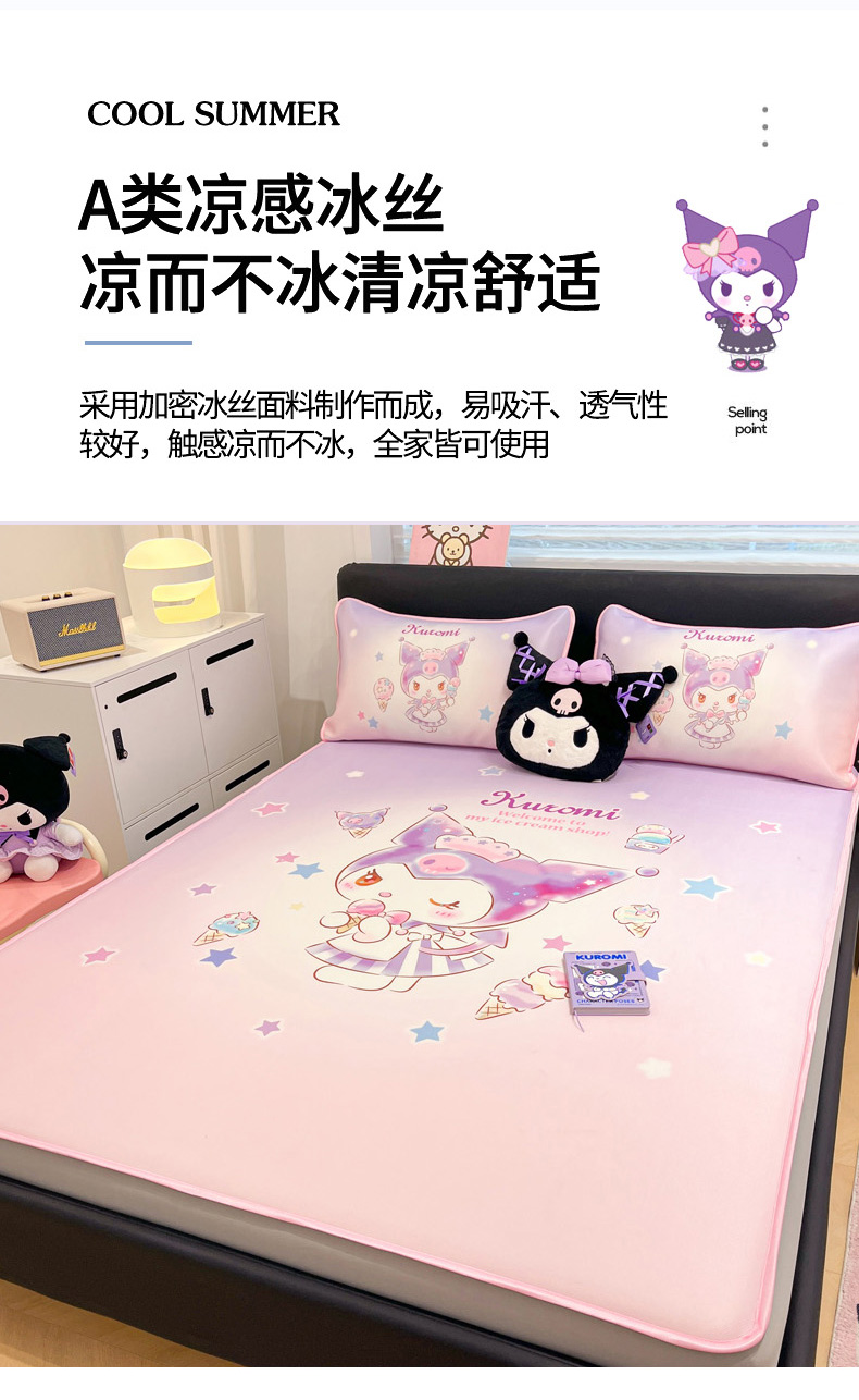 • 91家纺网 家纺一手货源 找家纺 暮思家居 2025新款正版授权A类大版数码印花三丽鸥可机洗1200D冰丝凉席可组合针织棉夏被四件套床笠款 床笠款-炫彩库洛米