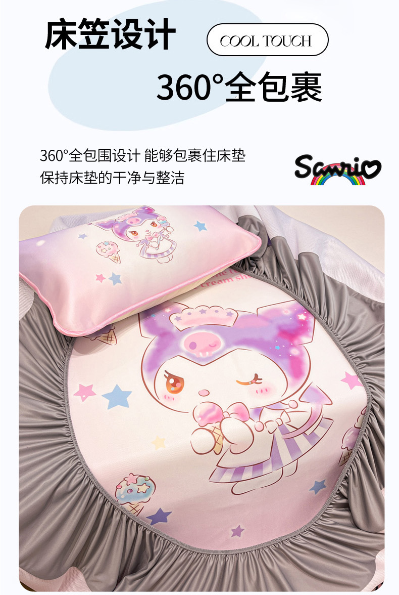 暮思家居 2025新款正版授权A类大版数码印花三丽鸥可机洗1200D冰丝凉席可组合针织棉夏被四件套床笠款 床笠款-炫彩库洛米