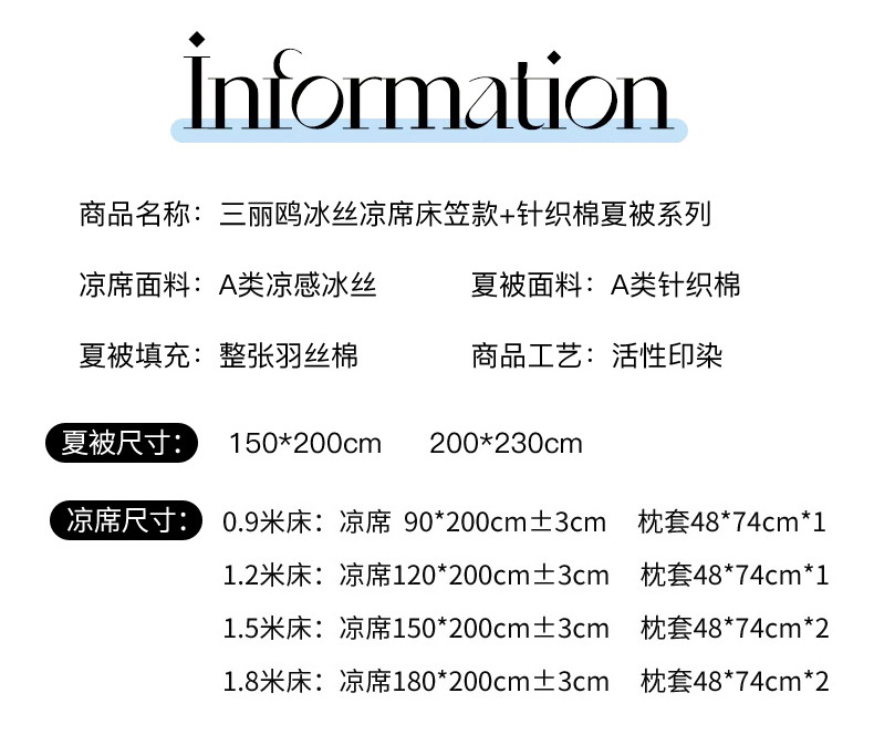 180x200cm凉席+枕套48*74*2 (含防伪码)