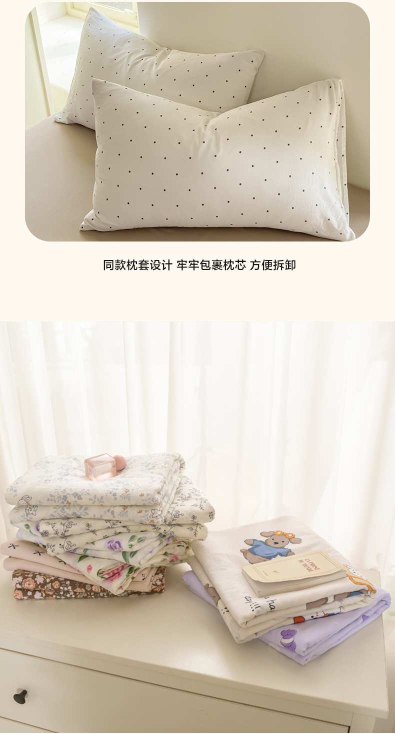 当前位置: 91家纺网 > 商品网购 > 床品套件 > 四件套 > 全棉普通四件套 > 【提供买家秀】2025直播云感皱皱棉四件套水洗棉简约风小碎花被套床笠三件套-叠拍图 波点白