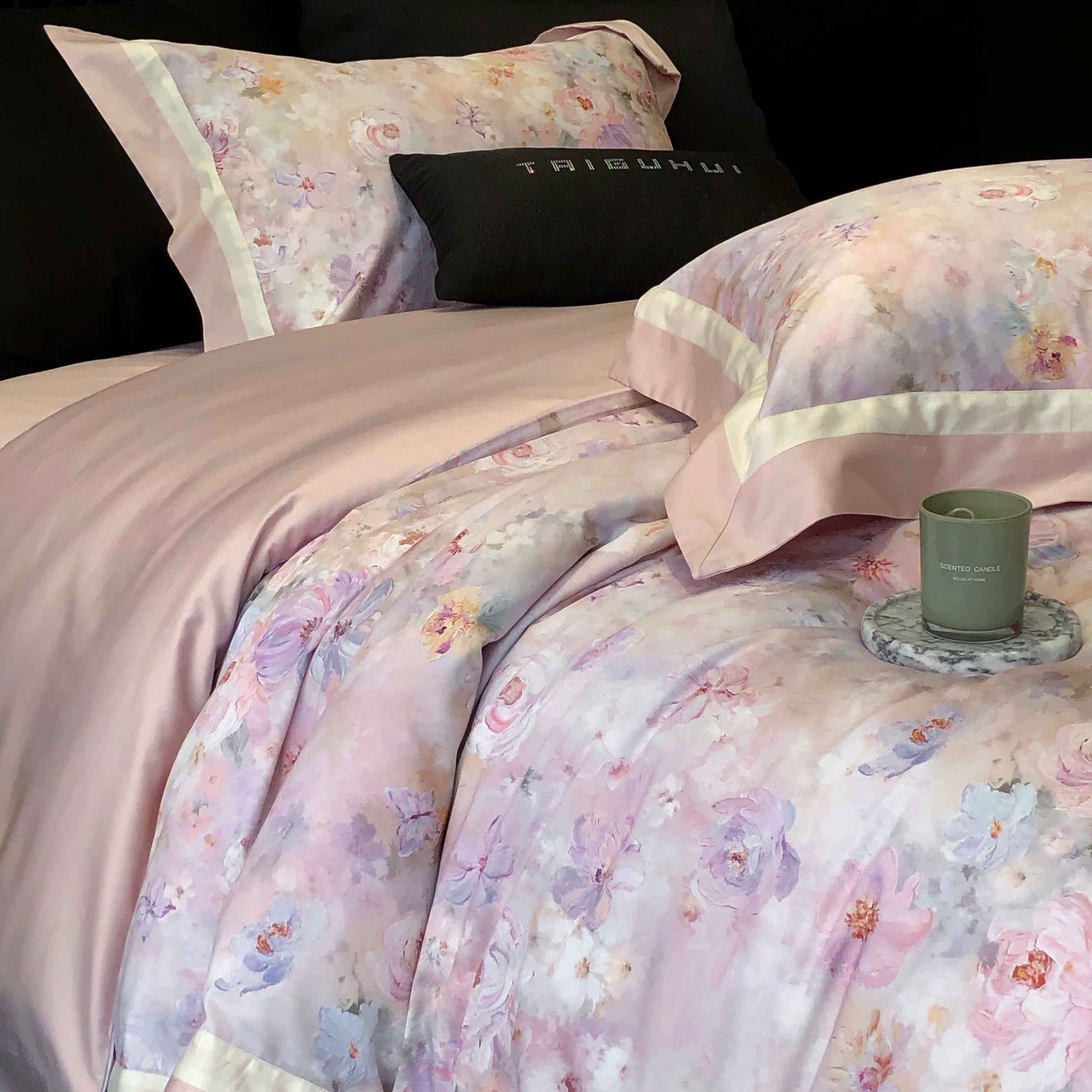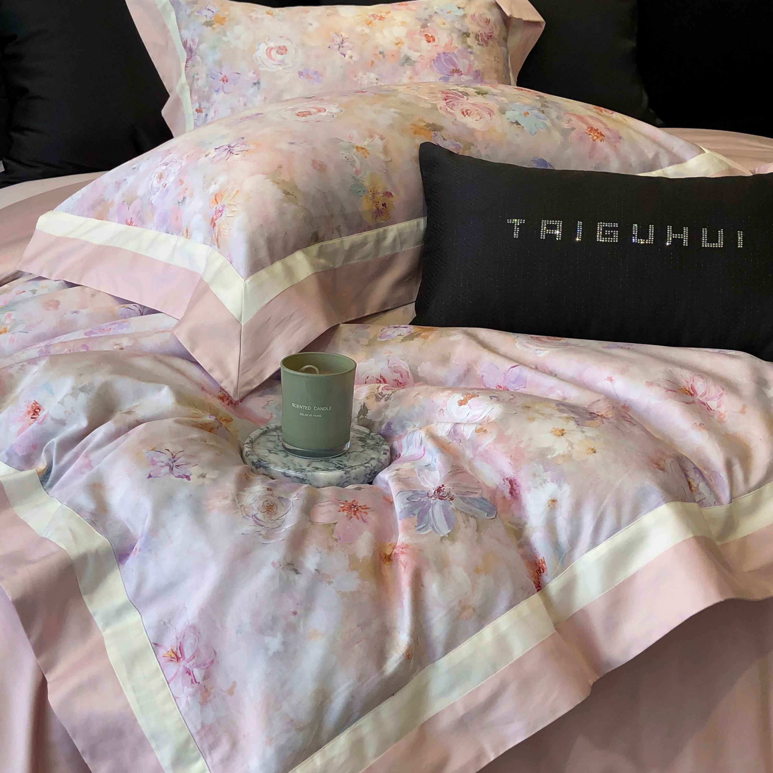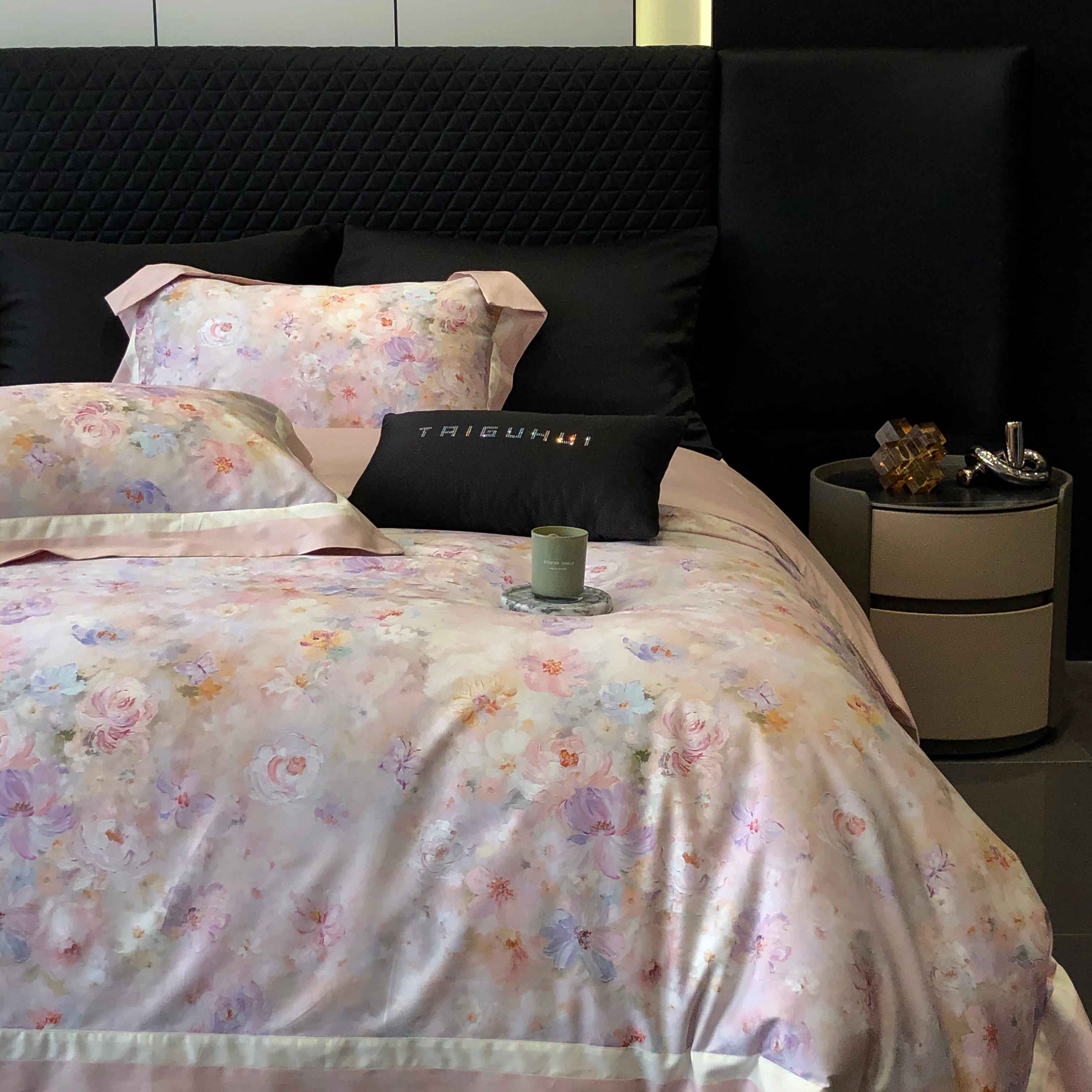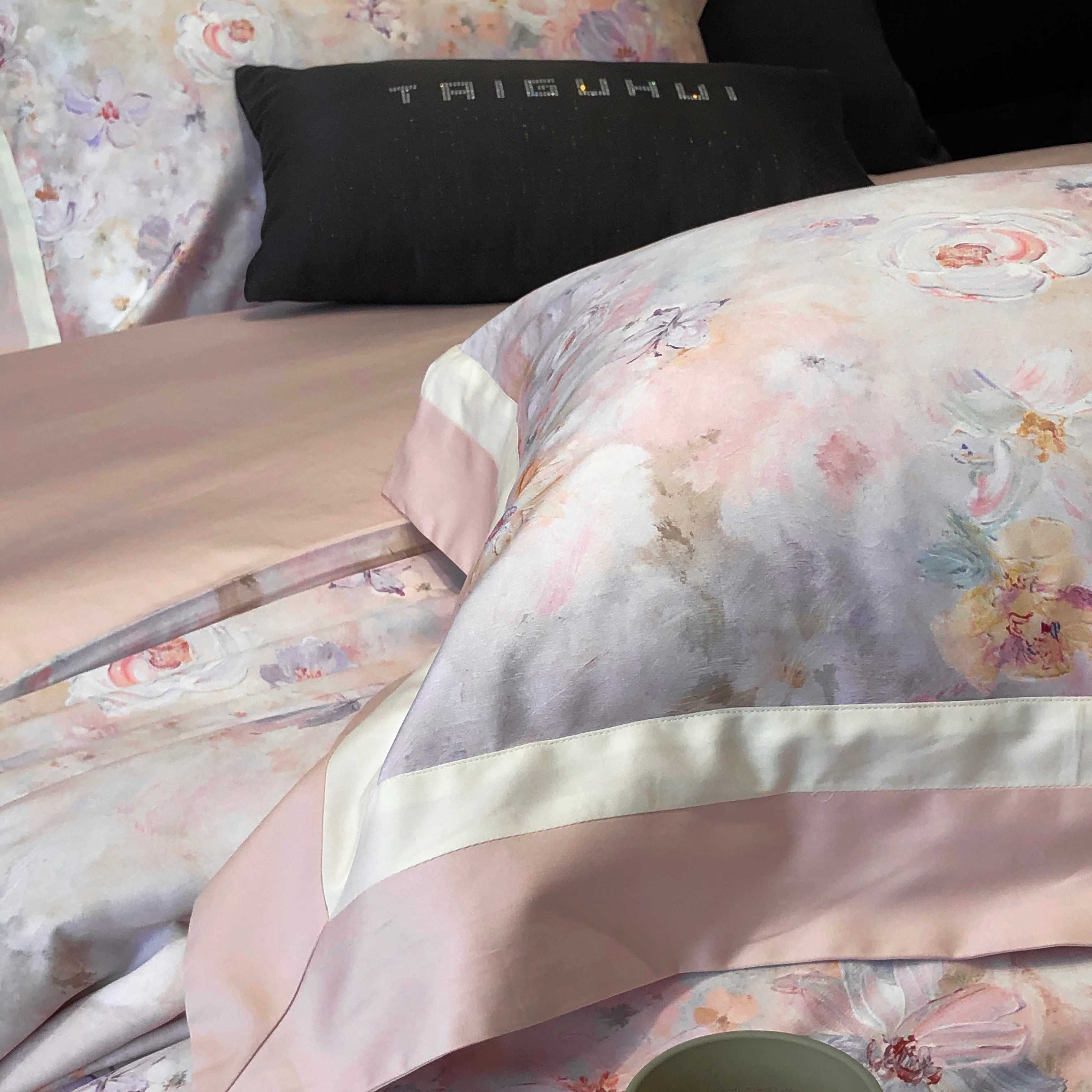 太古汇家居 2025新款高支高密长绒棉专版数码印花双拼四件套系列-都市新贵【券后不低于378】 生如夏花-玫瑰粉