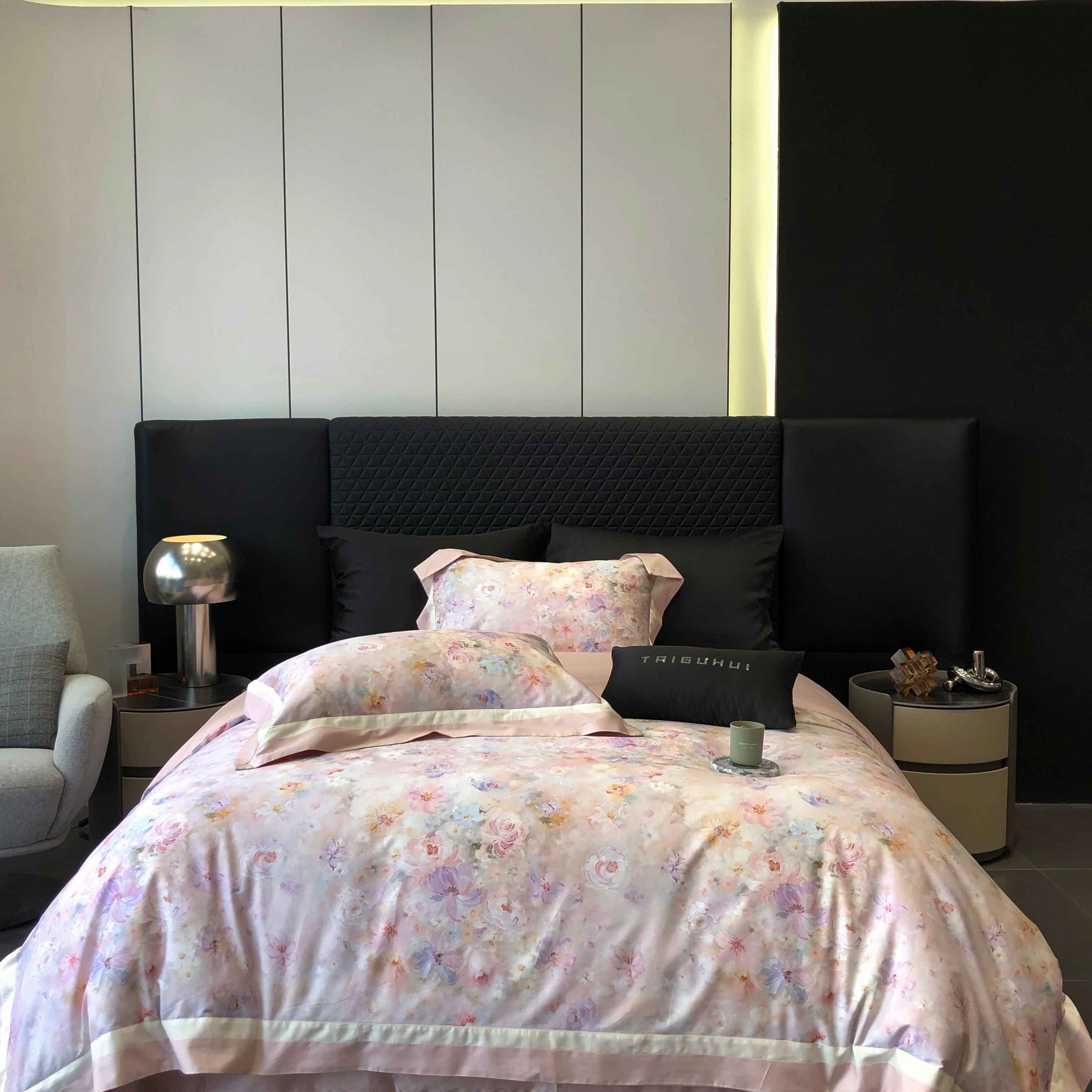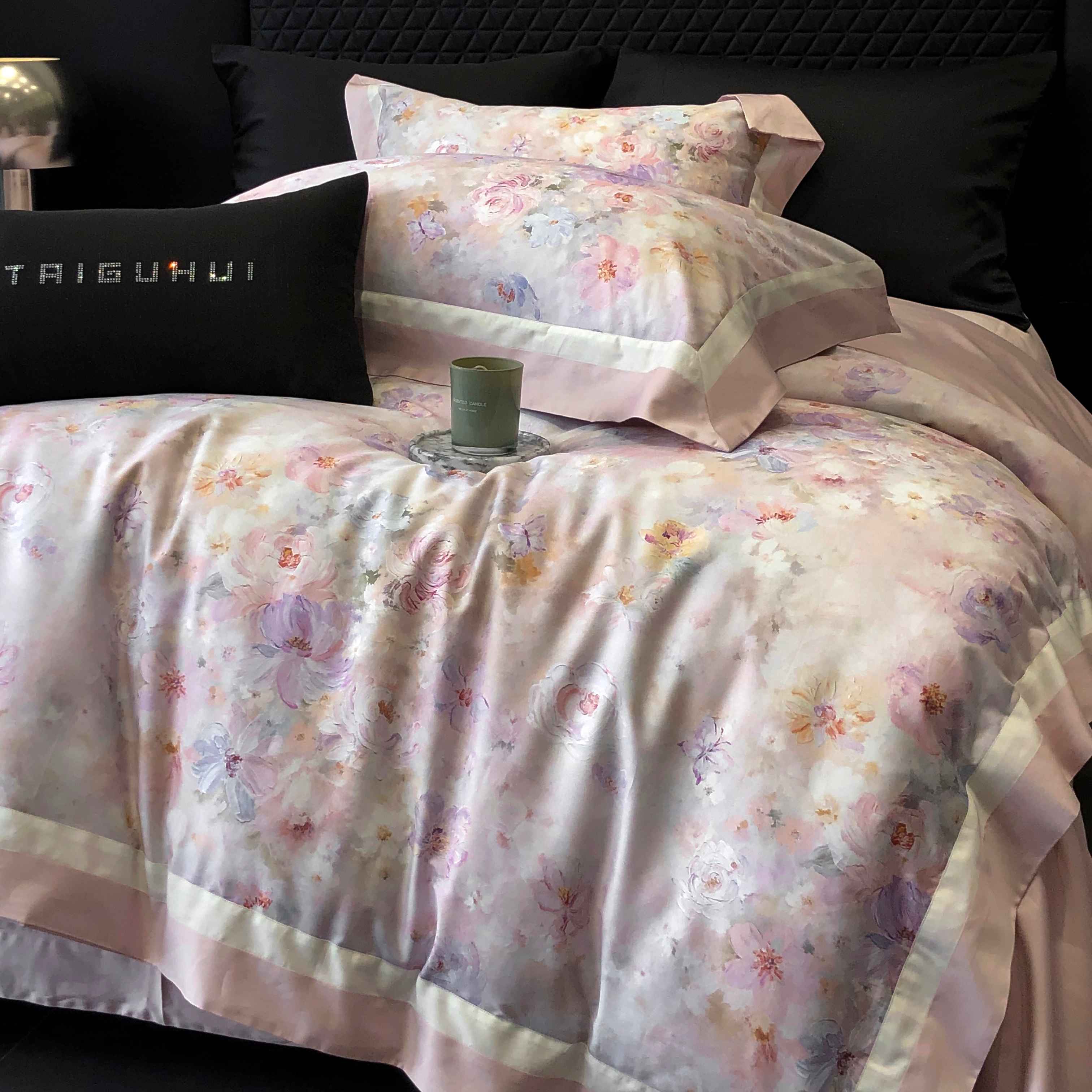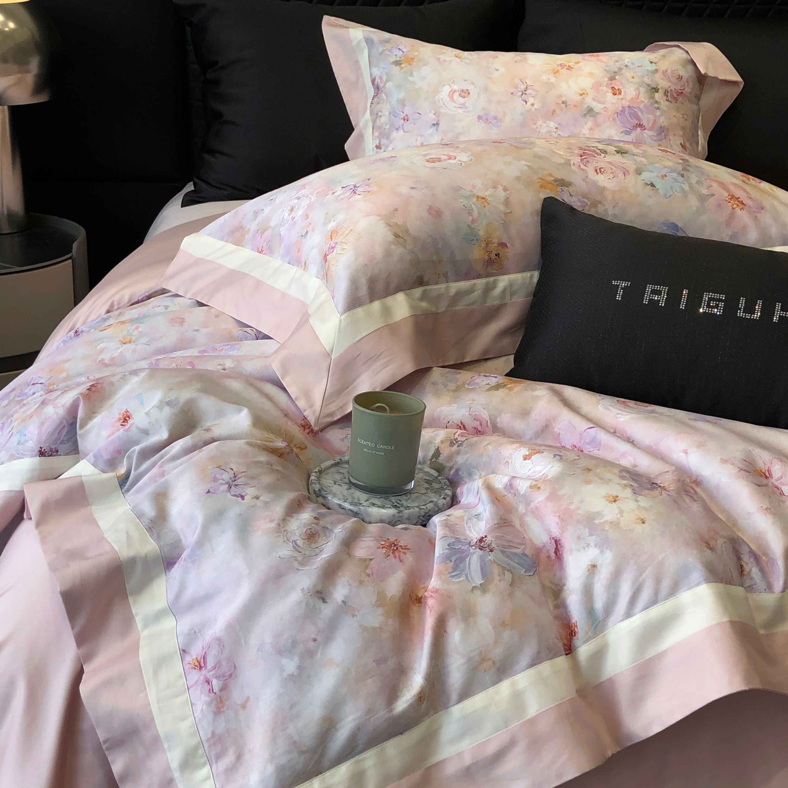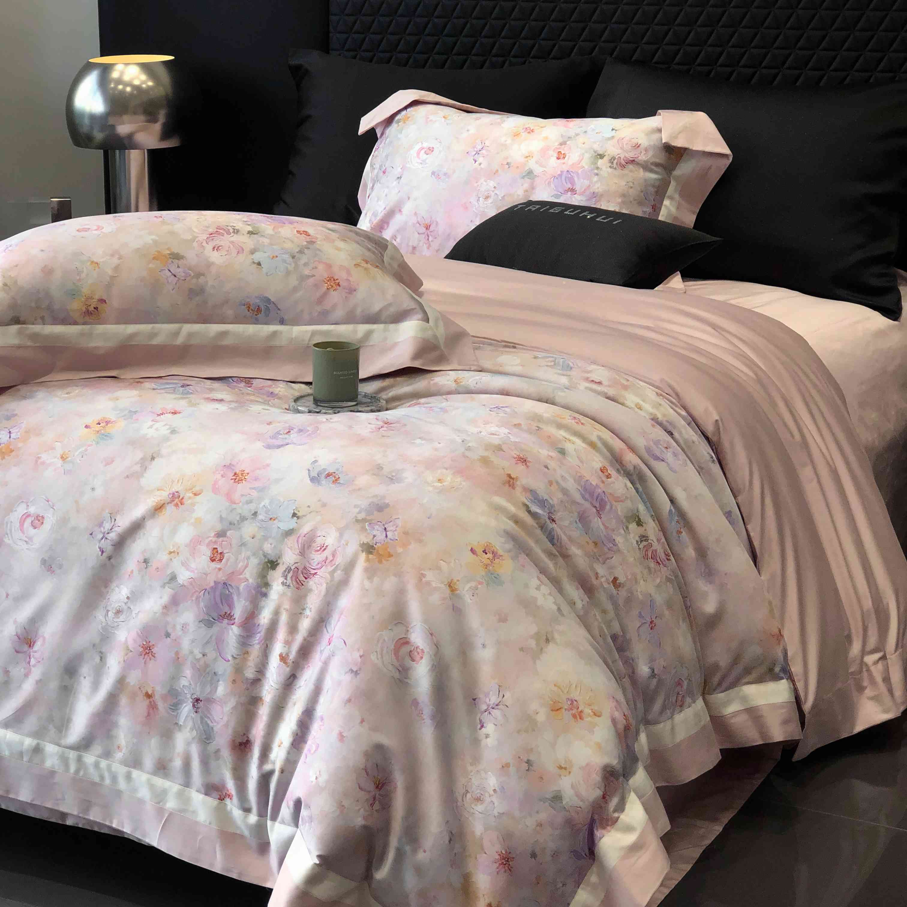 太古汇家居 2025新款高支高密长绒棉专版数码印花双拼四件套系列-都市新贵【券后不低于378】 生如夏花-玫瑰粉
