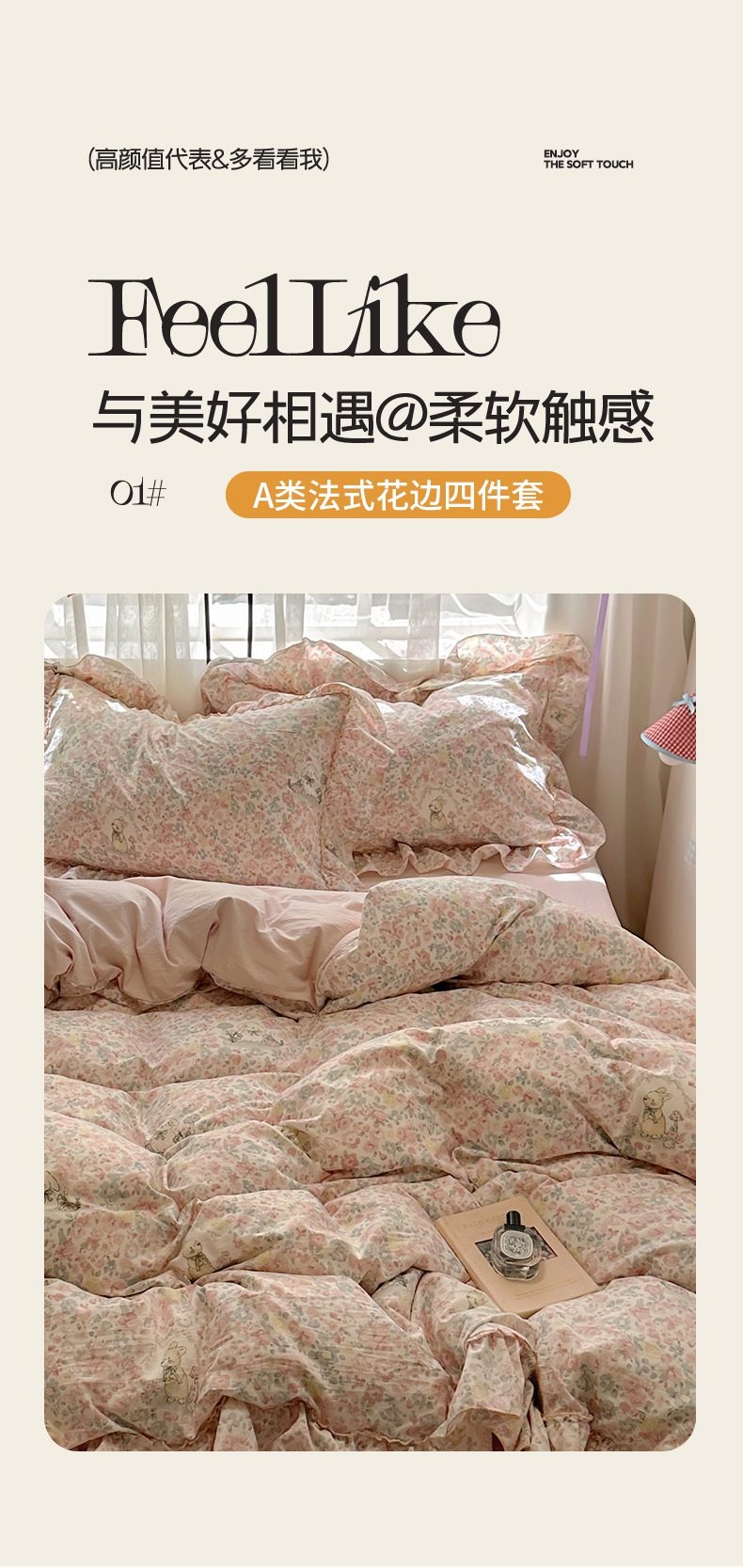 当前位置: 91家纺网 > 商品网购 > 床品套件 > 四件套 > 其它四件套 > 冕悠家纺 2025新款A类法式花边四件套超柔裸睡级床单被套三件套-风格一+微信提供买家秀 濡染