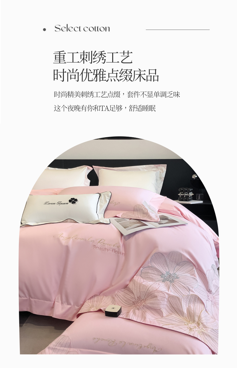 (总)星蕴家纺 2024新款A类新疆全棉刺绣四件套,高级灰,奶昔白,千禧粉,浅香槟