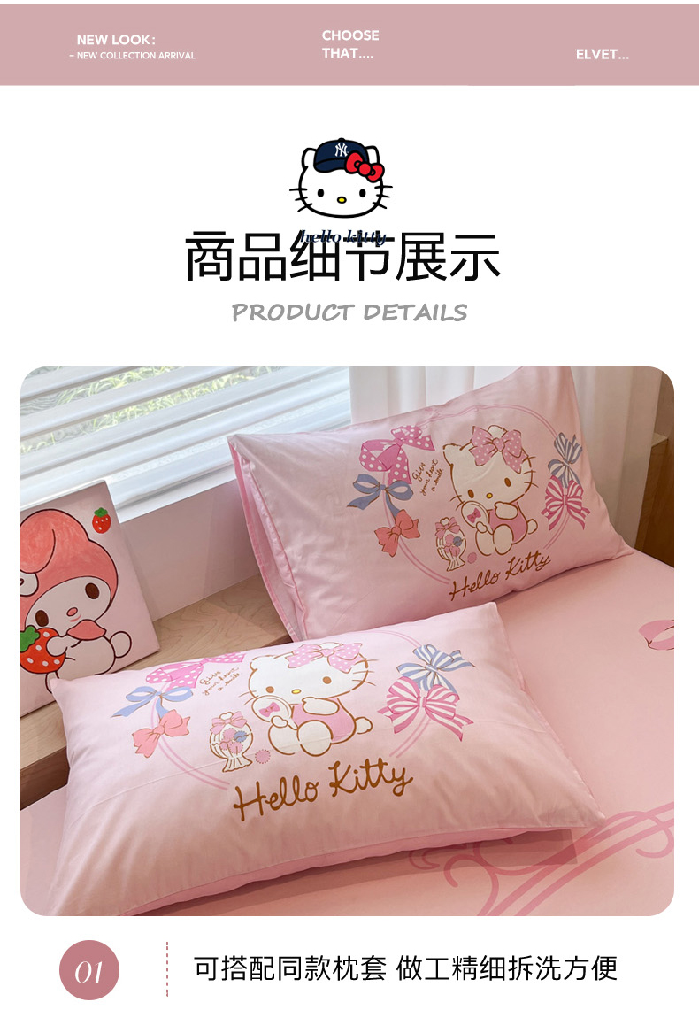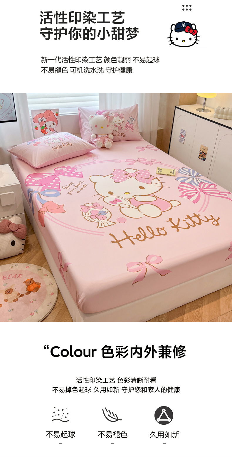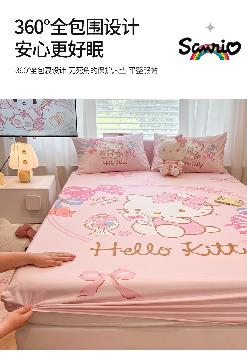 • 91家纺网 家纺一手货源 找家纺 暮思家居 2025新款正版授权三丽鸥大阪全棉数码印花纯棉单品床笠床笠单件单床笠(专版花型) 棉A版-美美KT