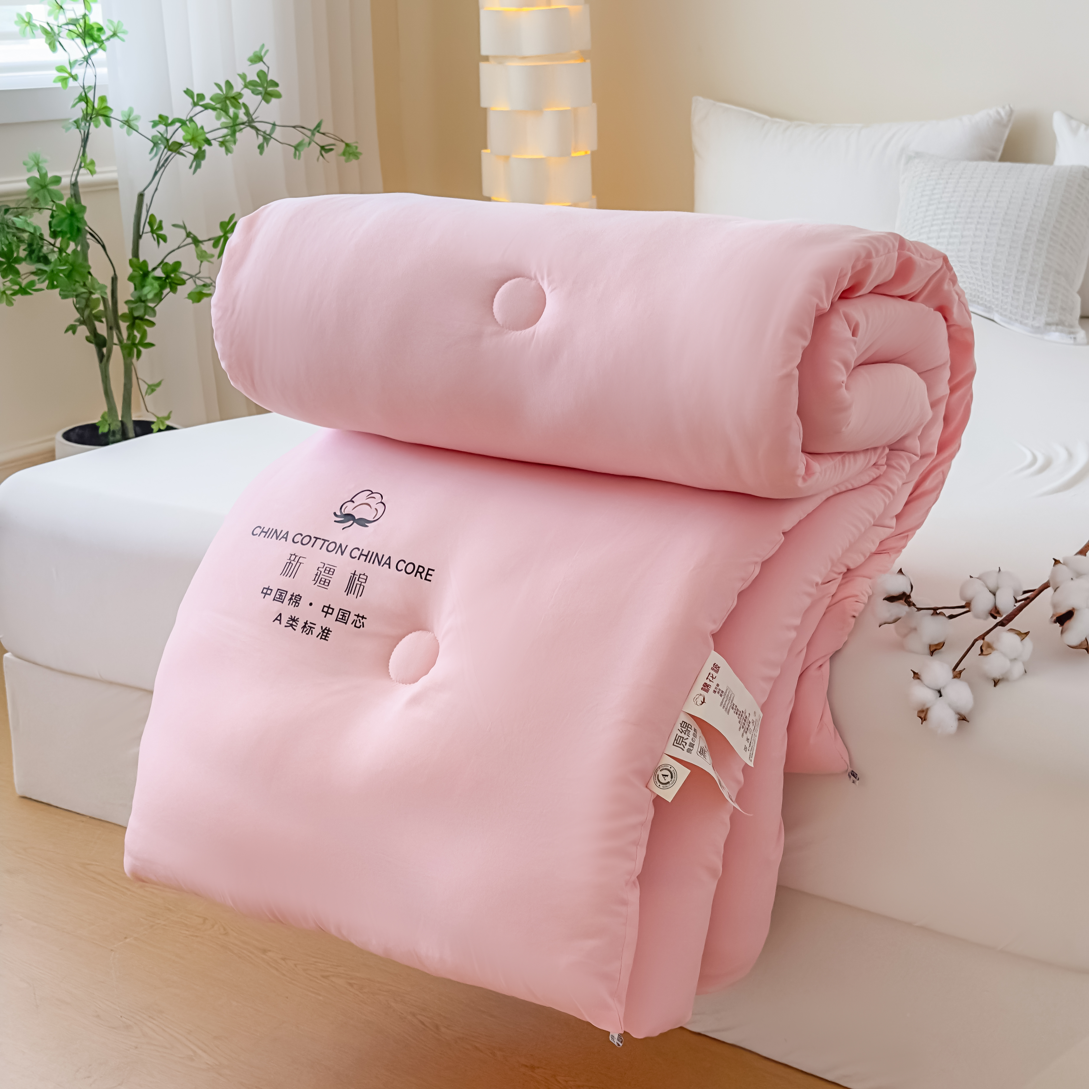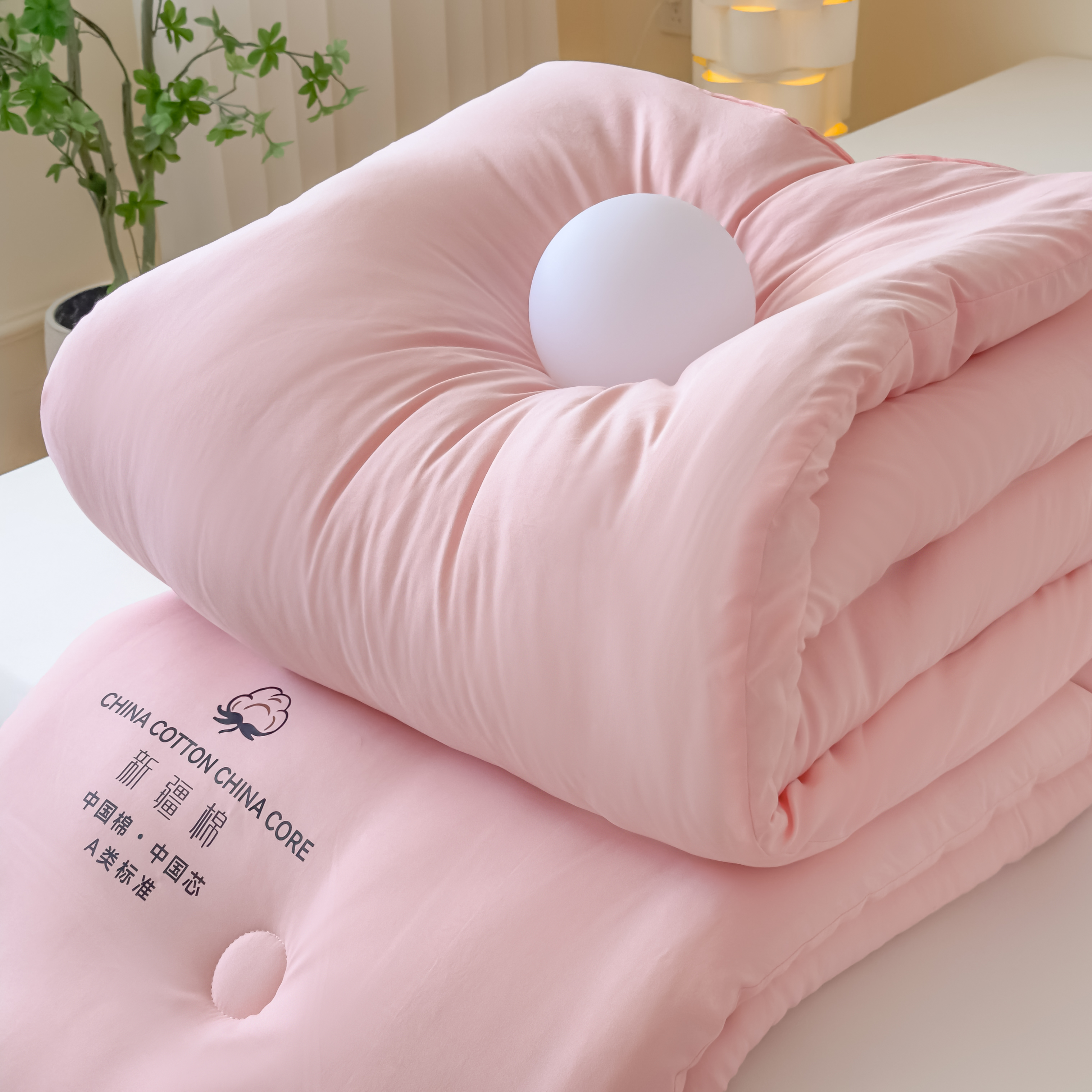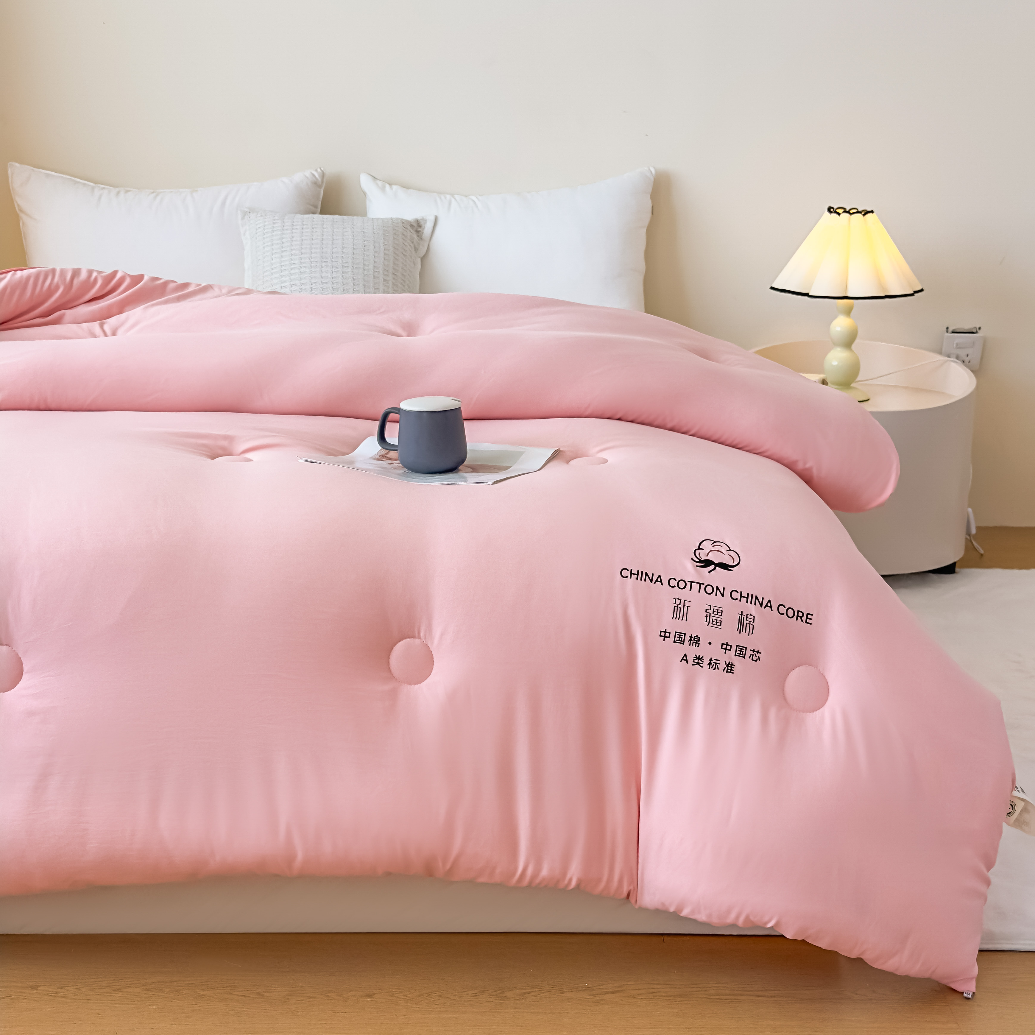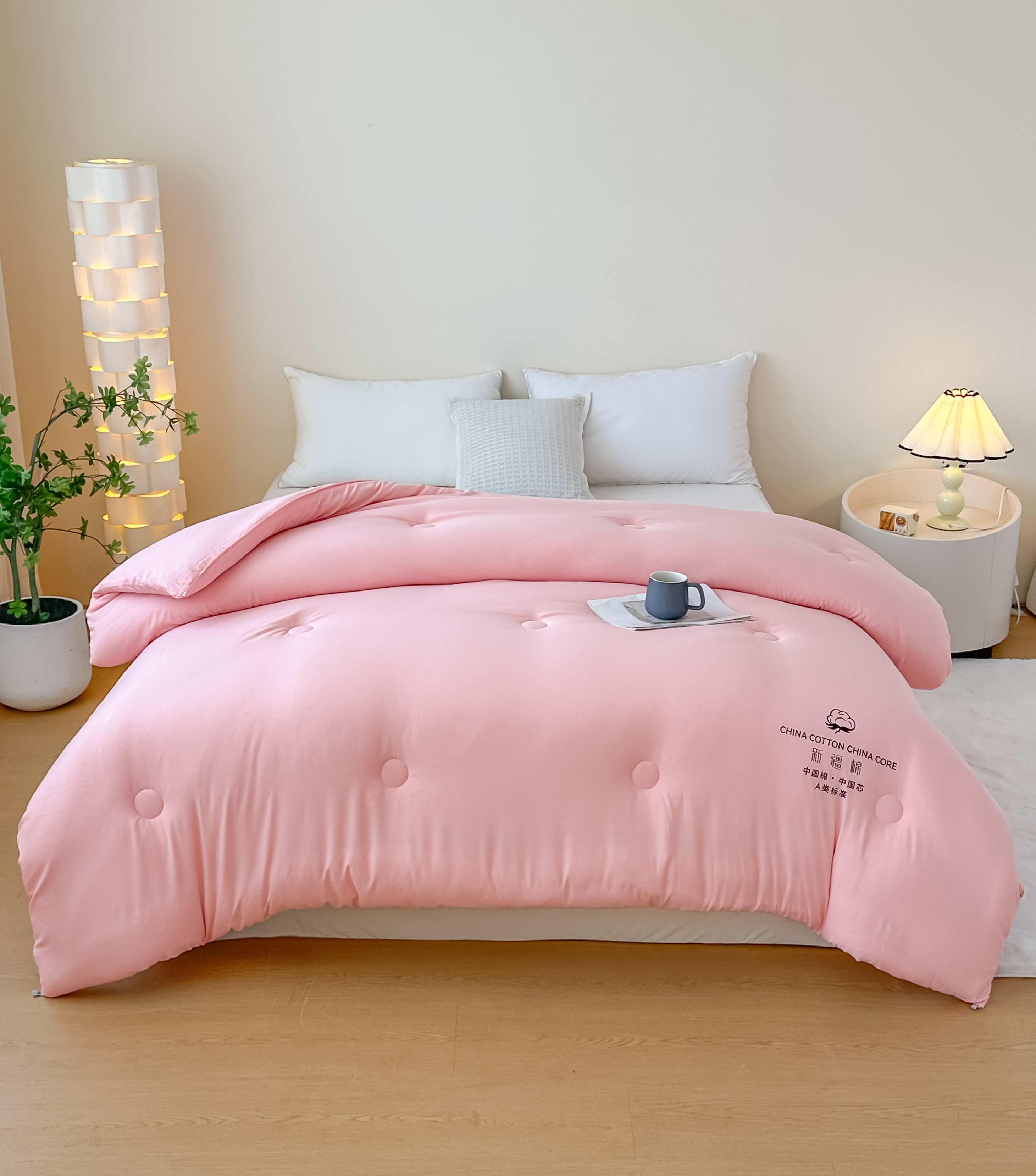 • 91家纺网 家纺一手货源 找家纺 承柔家纺 2025新款水洗棉棉花被 粉色