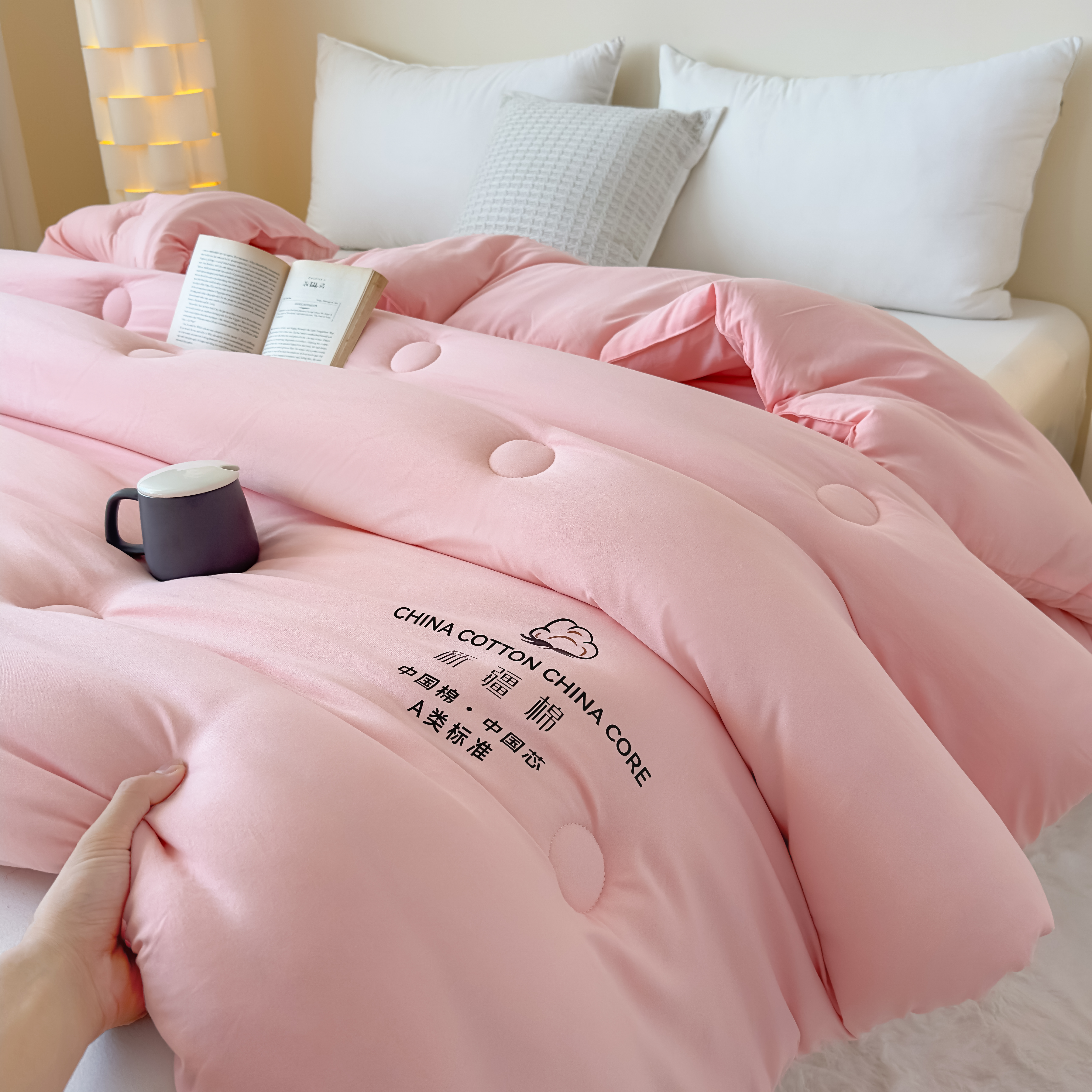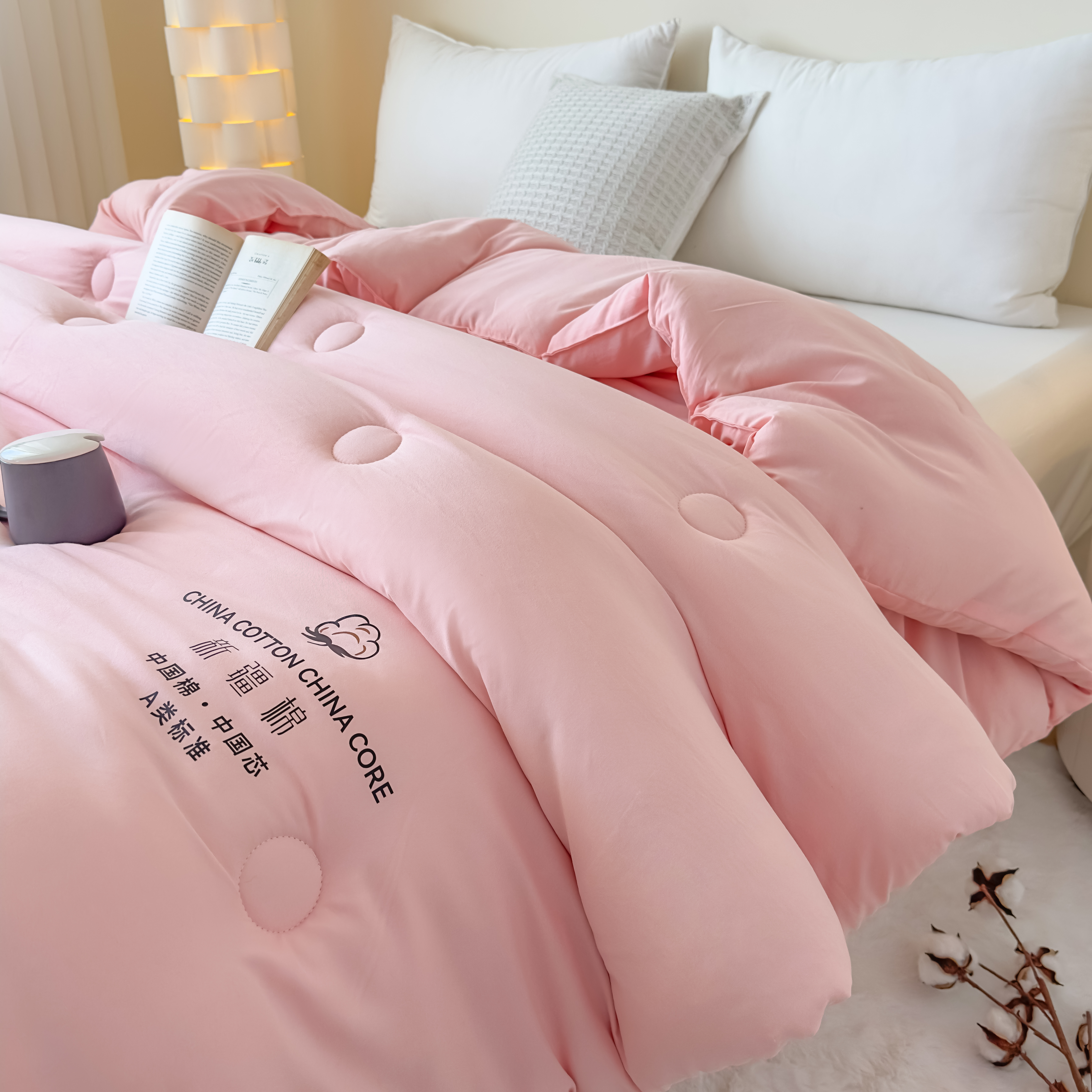 • 91家纺网 家纺一手货源 找家纺 (总)承柔 原棉大豆纤维被加厚冬被学生四季被芯功能被春秋被被子直播爆款,白色,灰色,粉玉