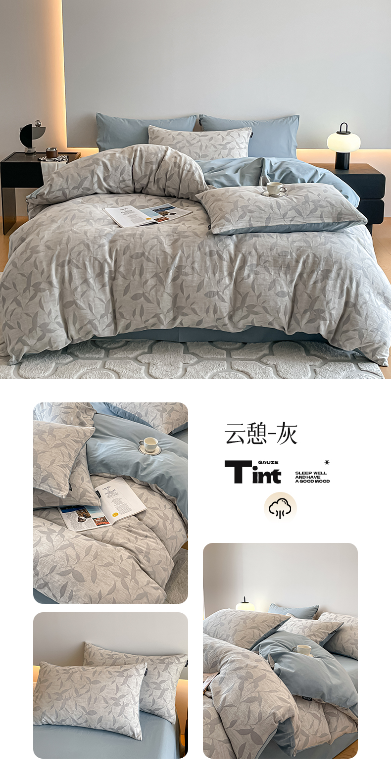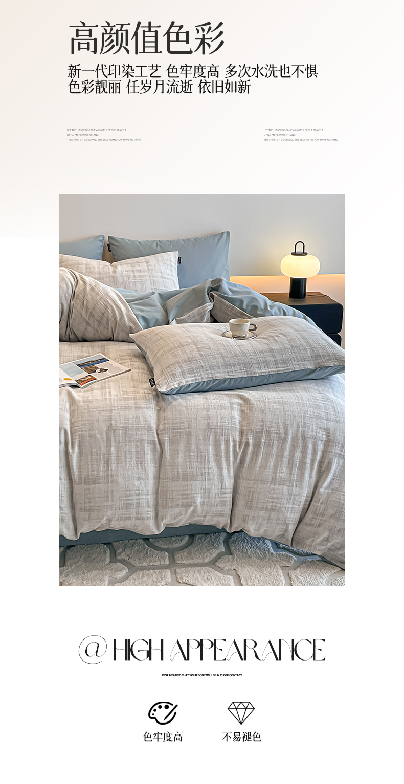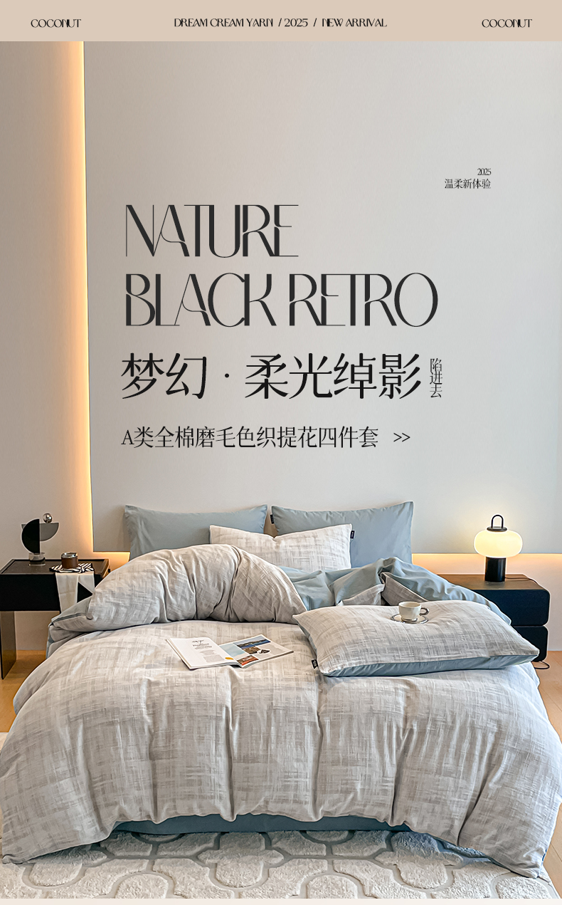 当前位置: 91家纺网 > 商品网购 > 床品套件 > 四件套 > 普通磨毛四件套 > 涵宸家纺 2025新款全棉磨毛色织提花四件套 叶幕