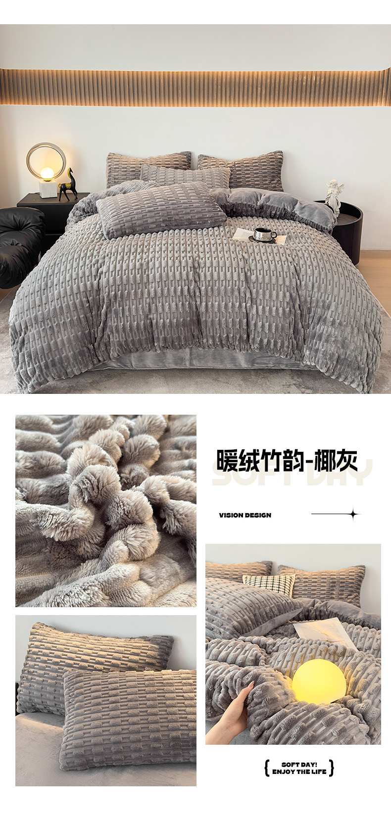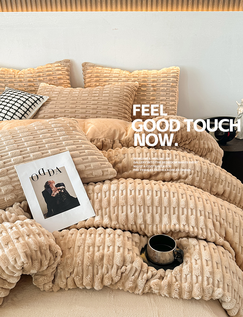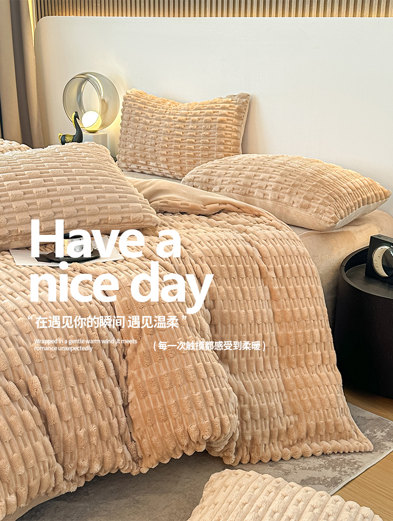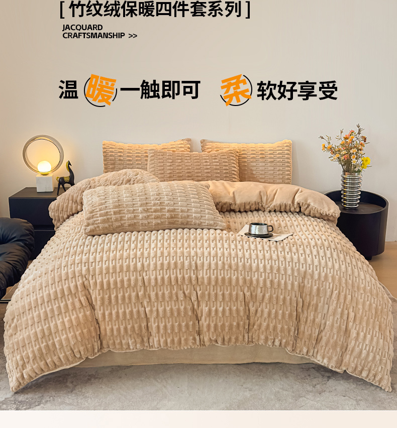 当前位置: 91家纺网 > 商品网购 > 床品套件 > 四件套 > 牛奶绒四件套 > 潮邦创意家居 2025冬季竹纹绒牛奶绒四件套-暖绒竹韵系列 暖绒竹韵-浅驼