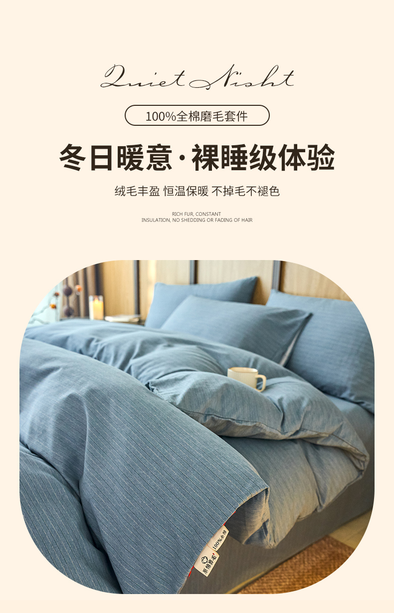 商品名称:春皖家纺 2025新款全棉原棉磨毛色织水洗四件套回暖系列-风格二 柏林蓝