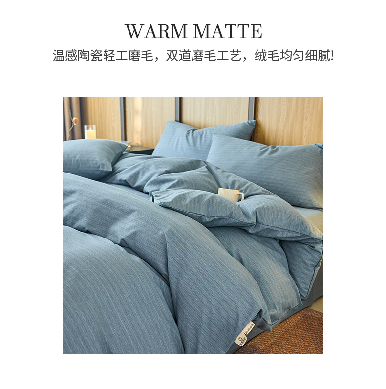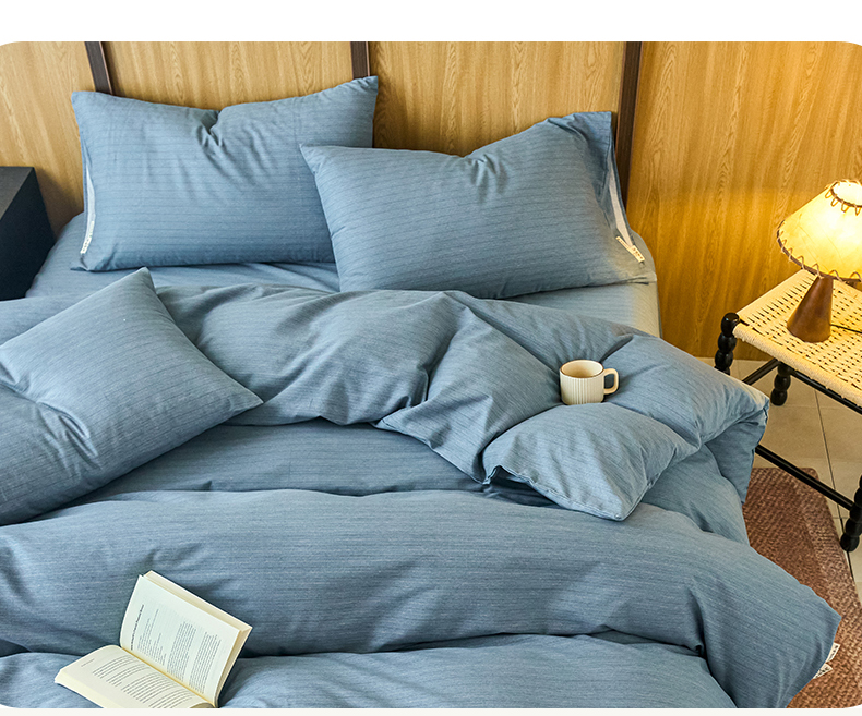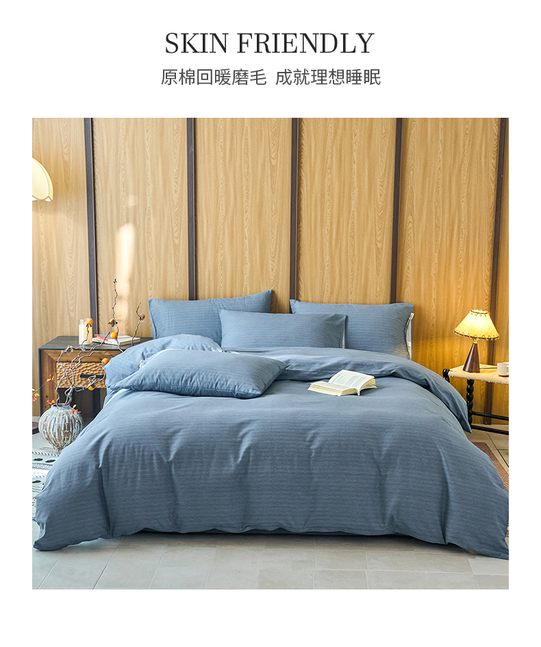 春皖家纺 2025新款全棉原棉磨毛色织水洗四件套回暖系列-风格二 柏林蓝