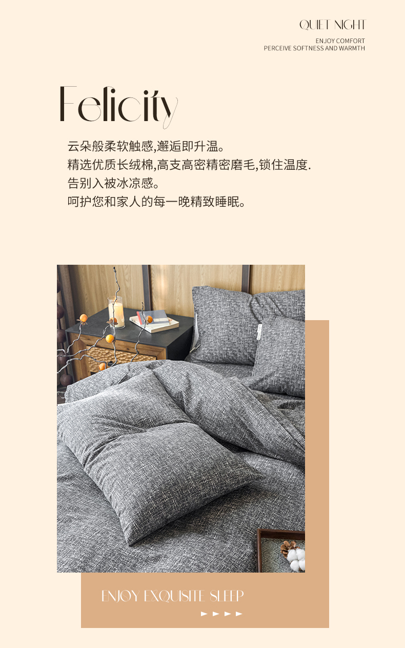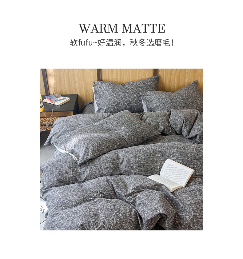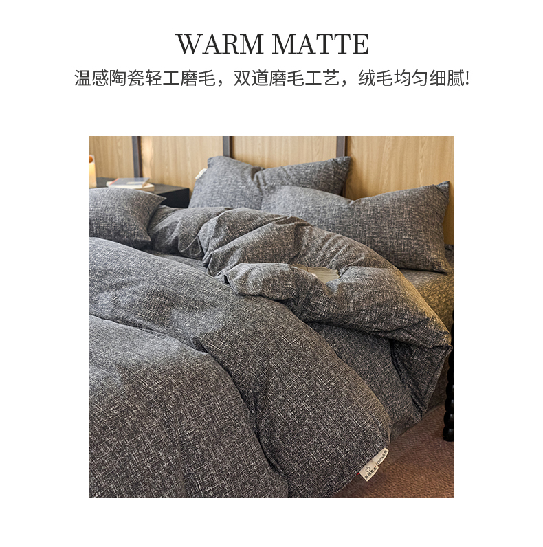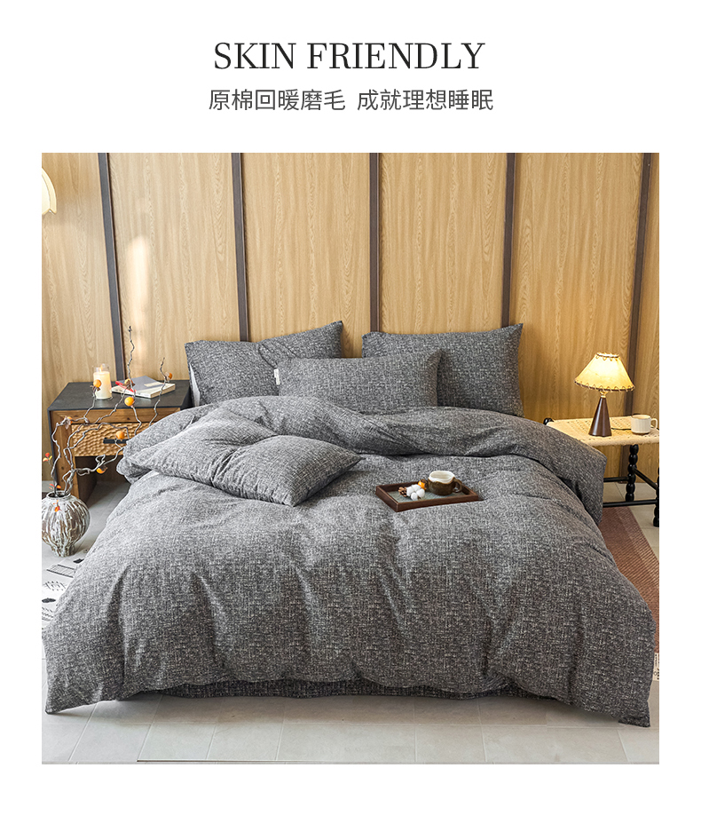 商品名称:春皖家纺 2025新款全棉原棉磨毛色织水洗四件套回暖系列-风格二 浅陌灰