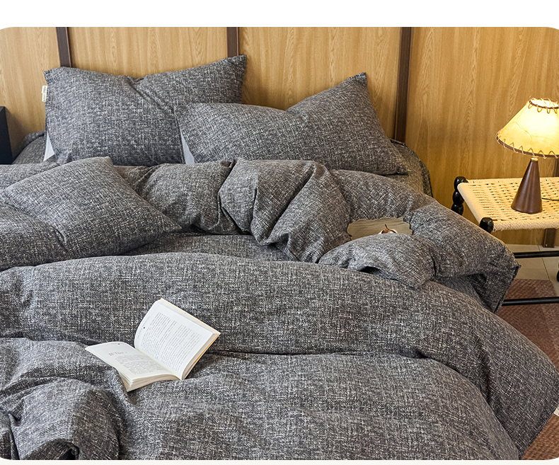 春皖家纺 2025新款全棉原棉磨毛色织水洗四件套回暖系列-风格二 浅陌灰