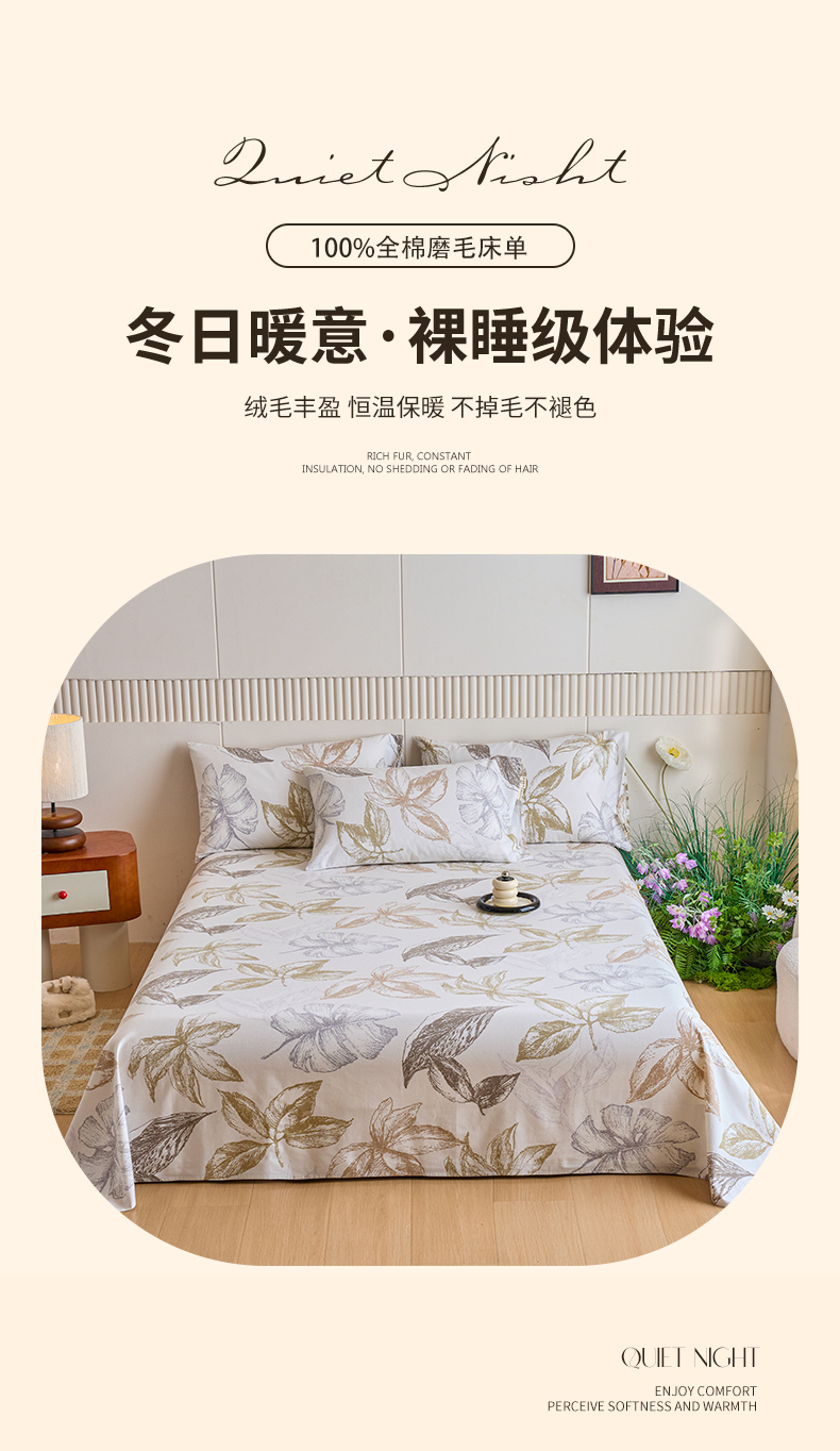 商品名称:春皖家纺 2025新款原棉磨毛单床单 床单单件-风格一留香