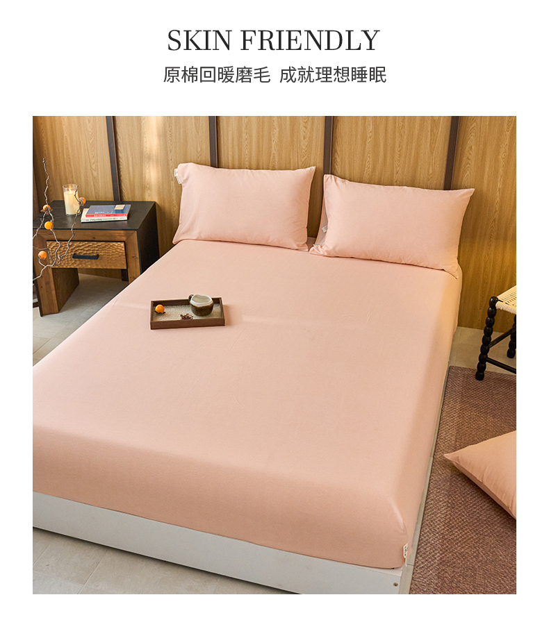 春皖家纺 2025新款全棉原棉磨毛色织水洗单床笠回暖系列-风格二 丽人粉