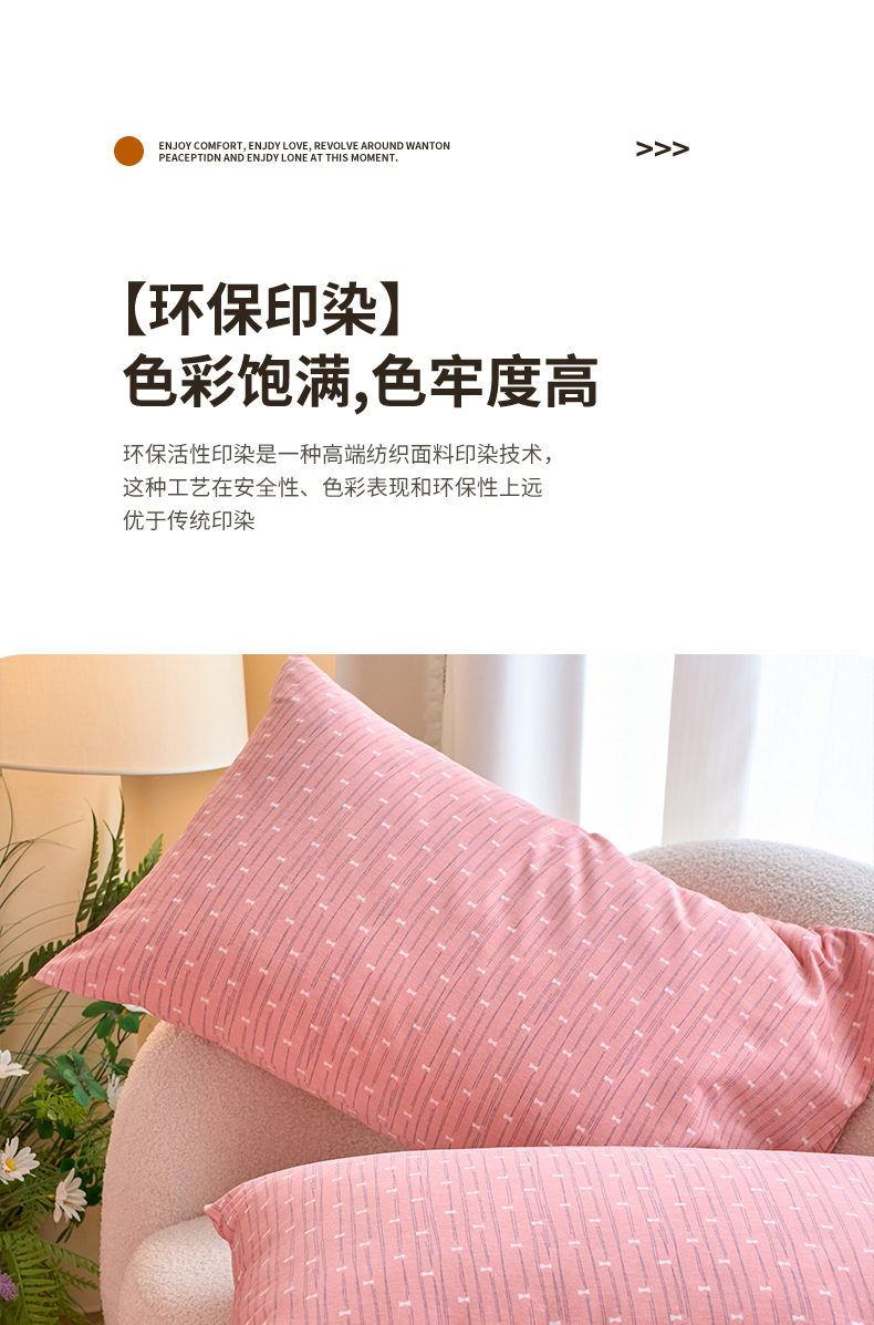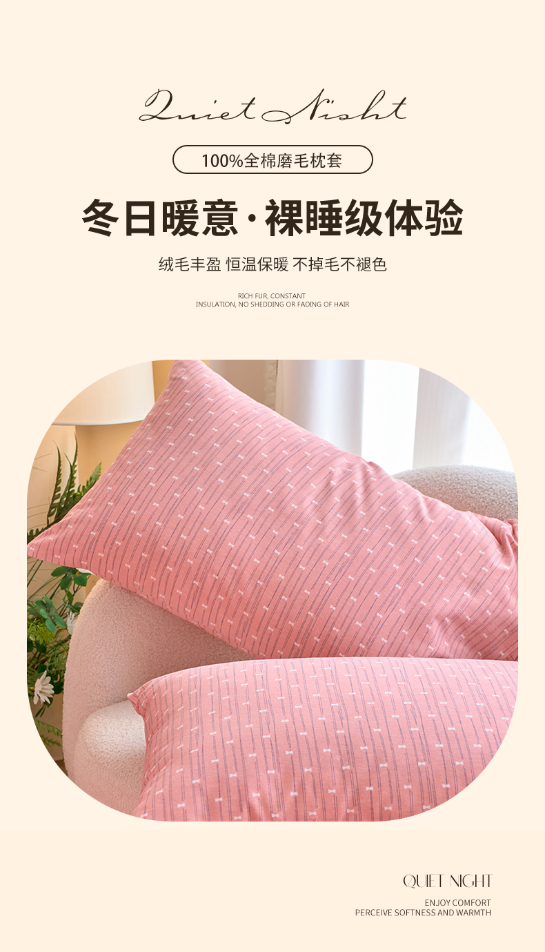 春皖家纺 2025新款全棉原棉磨毛色织水洗单枕套回暖系列-风格二 梦妮粉