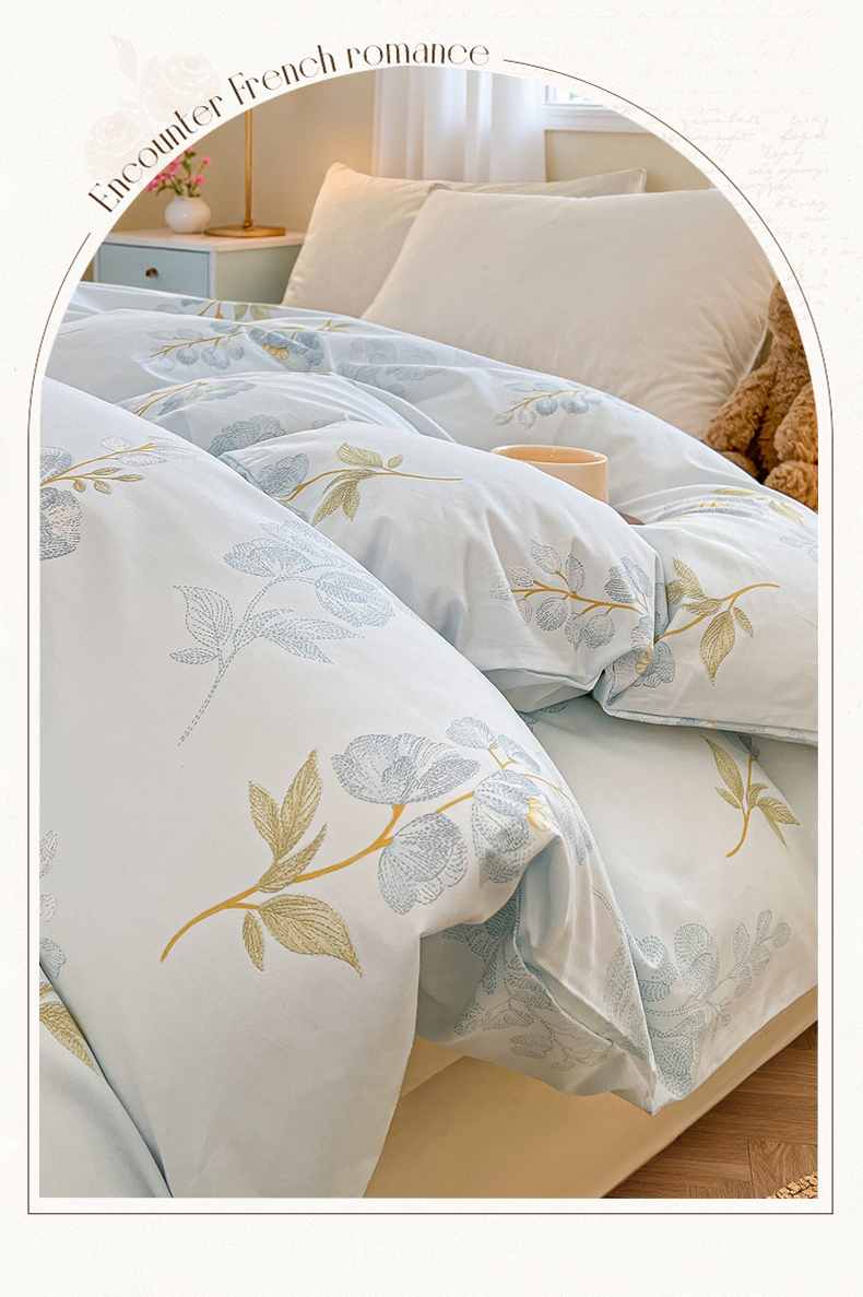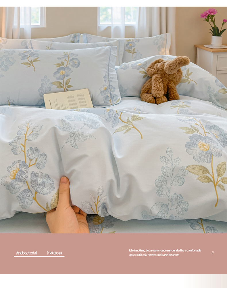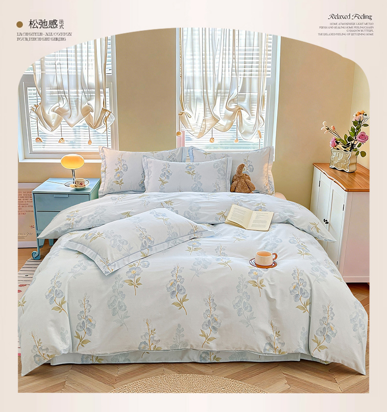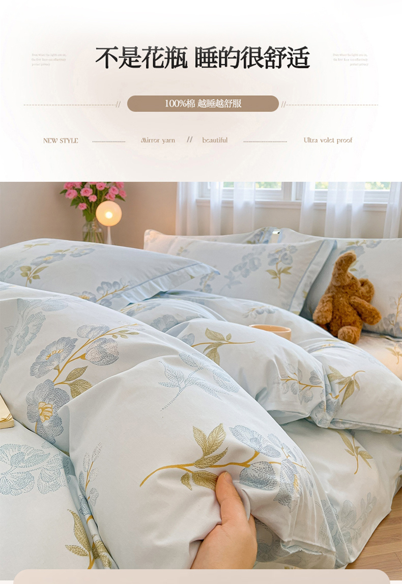 当前位置: 91家纺网 > 商品网购 > 床品套件 > 四件套 > 全棉普通四件套 > 名优家纺 2026新款60S13374高支密全棉印花纯色四件套 绣花仙-蓝