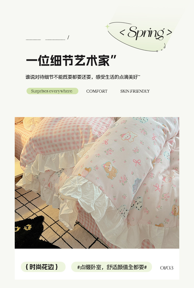 (总)六巷胡同 2025新款韩式INS卡通减龄花边款全棉四件套(第三系),花边波点嘟嘟猫,花边点点面包犬,花边调皮蔷薇狗,花边法棍滑板狗,花边粉格元气猫,花边哈喽泡芙猫,花边蓝格邦尼熊,花边蓝格插画犬,花边泡芙萌趣狗,花边森林音乐会,花边仙人掌粉象,花边熊熊猫咪崽,花边郁金香狗狗