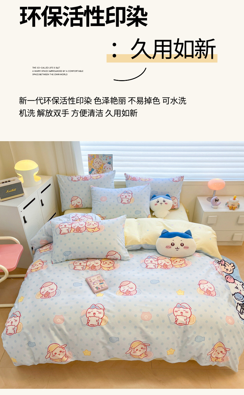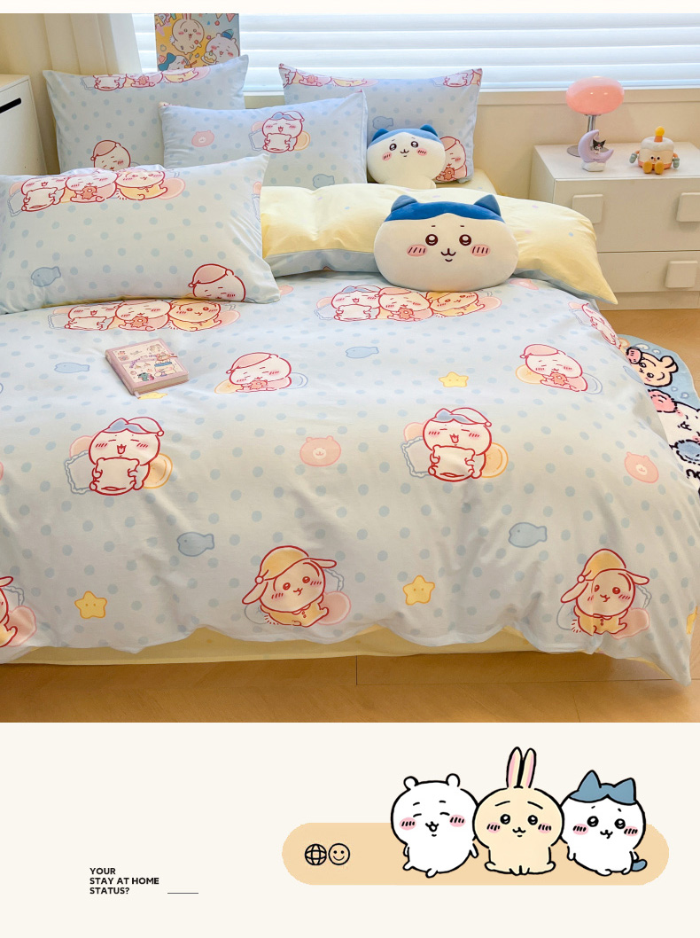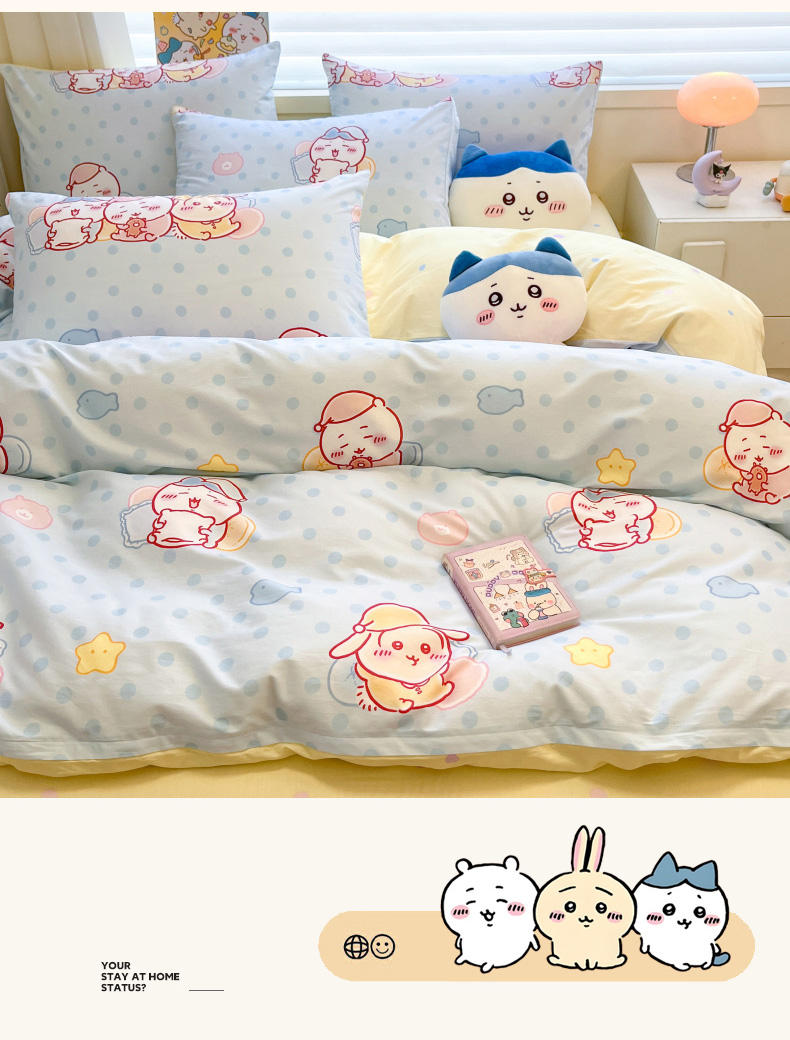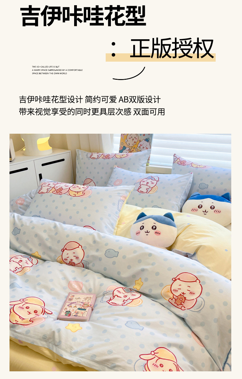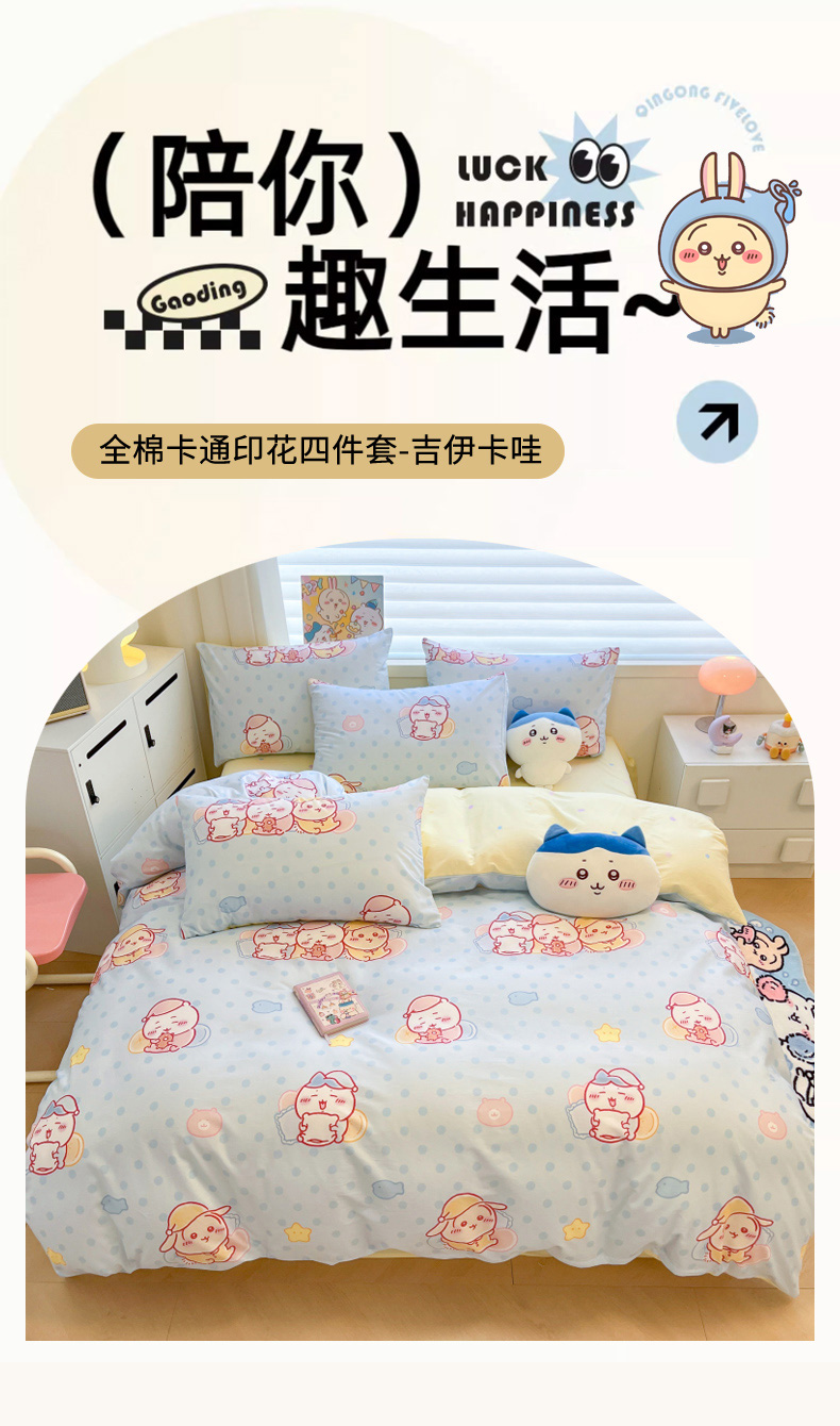 当前位置: 91家纺网 > 商品网购 > 床品套件 > 四件套 > 全棉普通四件套 > 暮思家居 2026新款正版授权吉伊卡哇全棉纯棉四件套 波点吉伊卡哇