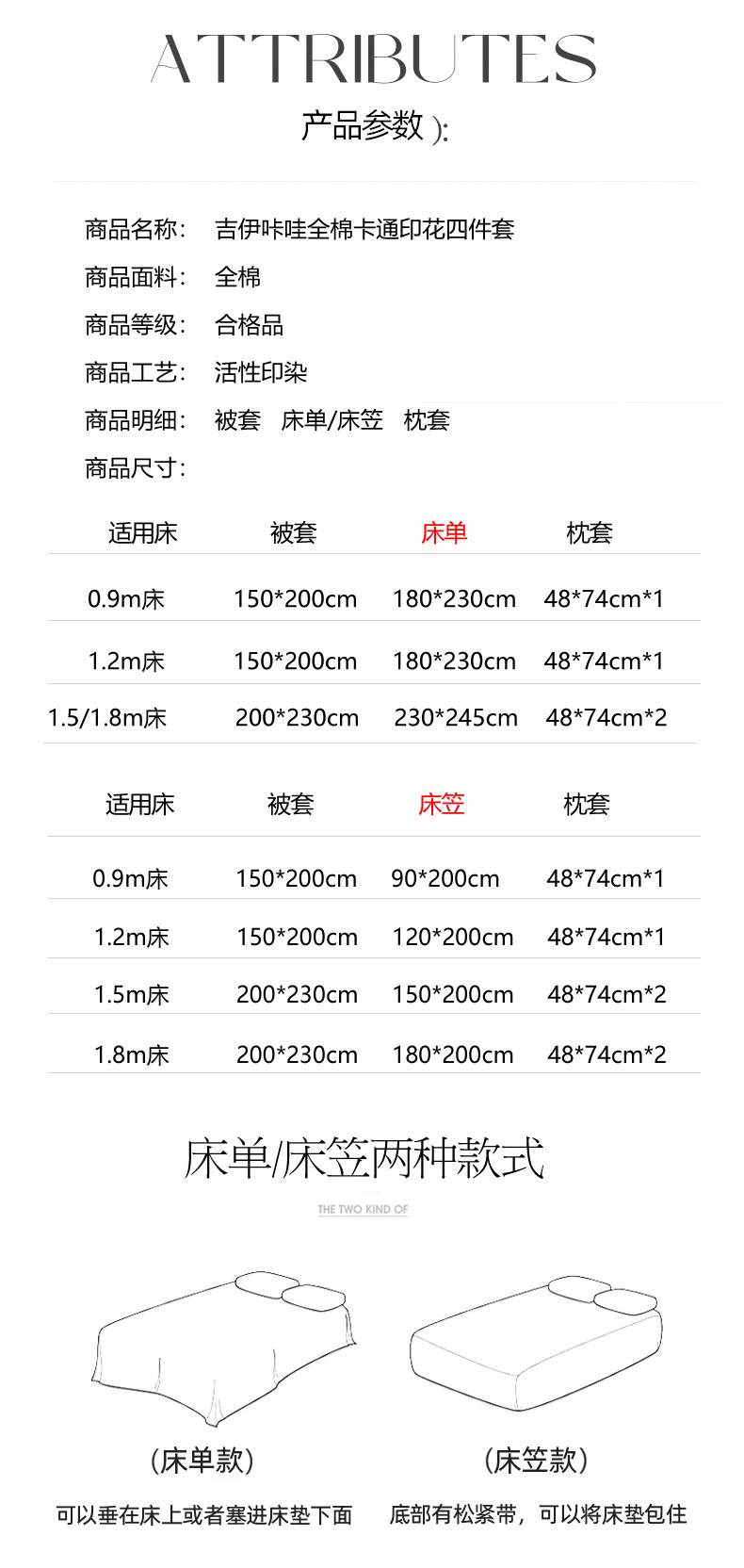【床笠款】1.8四件套-被套200x230 | ¥125.00 |