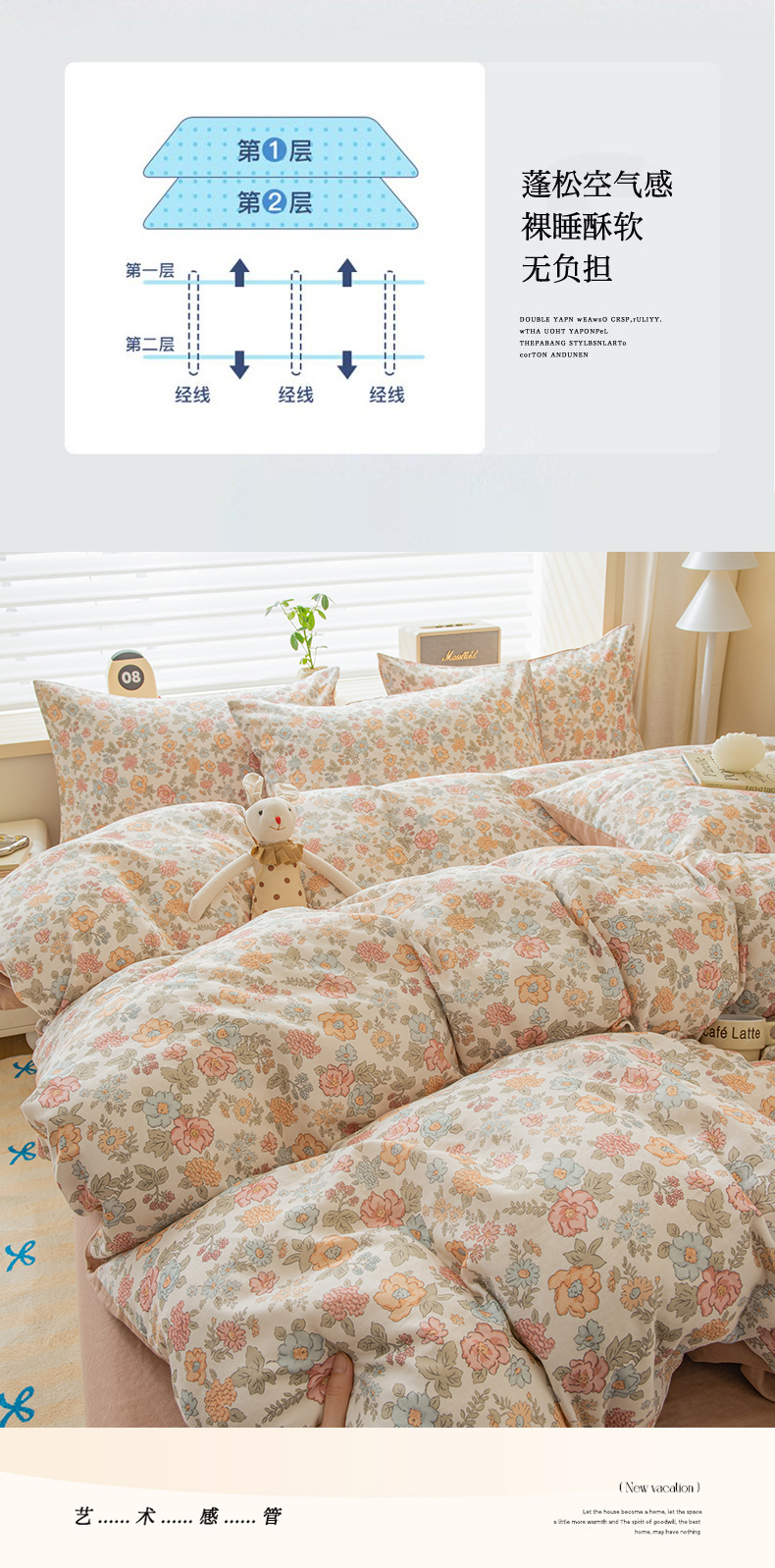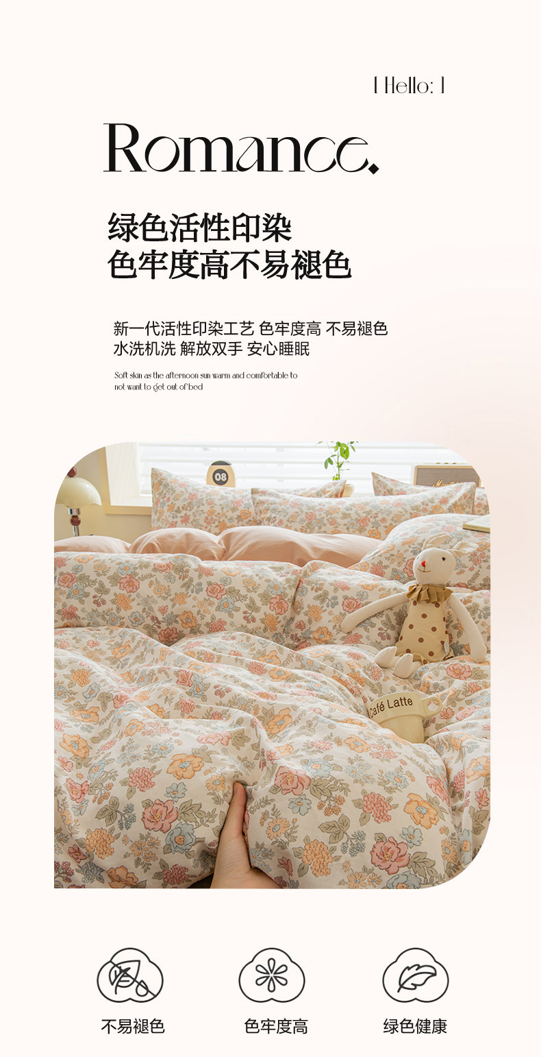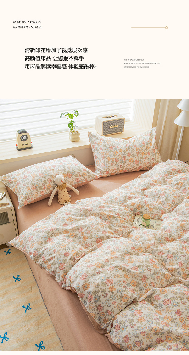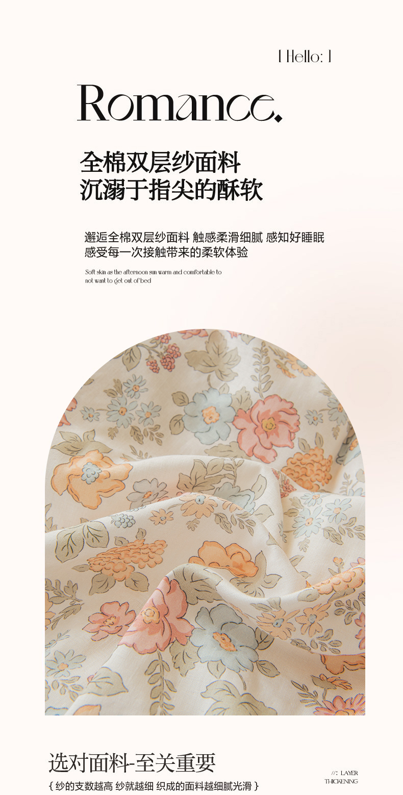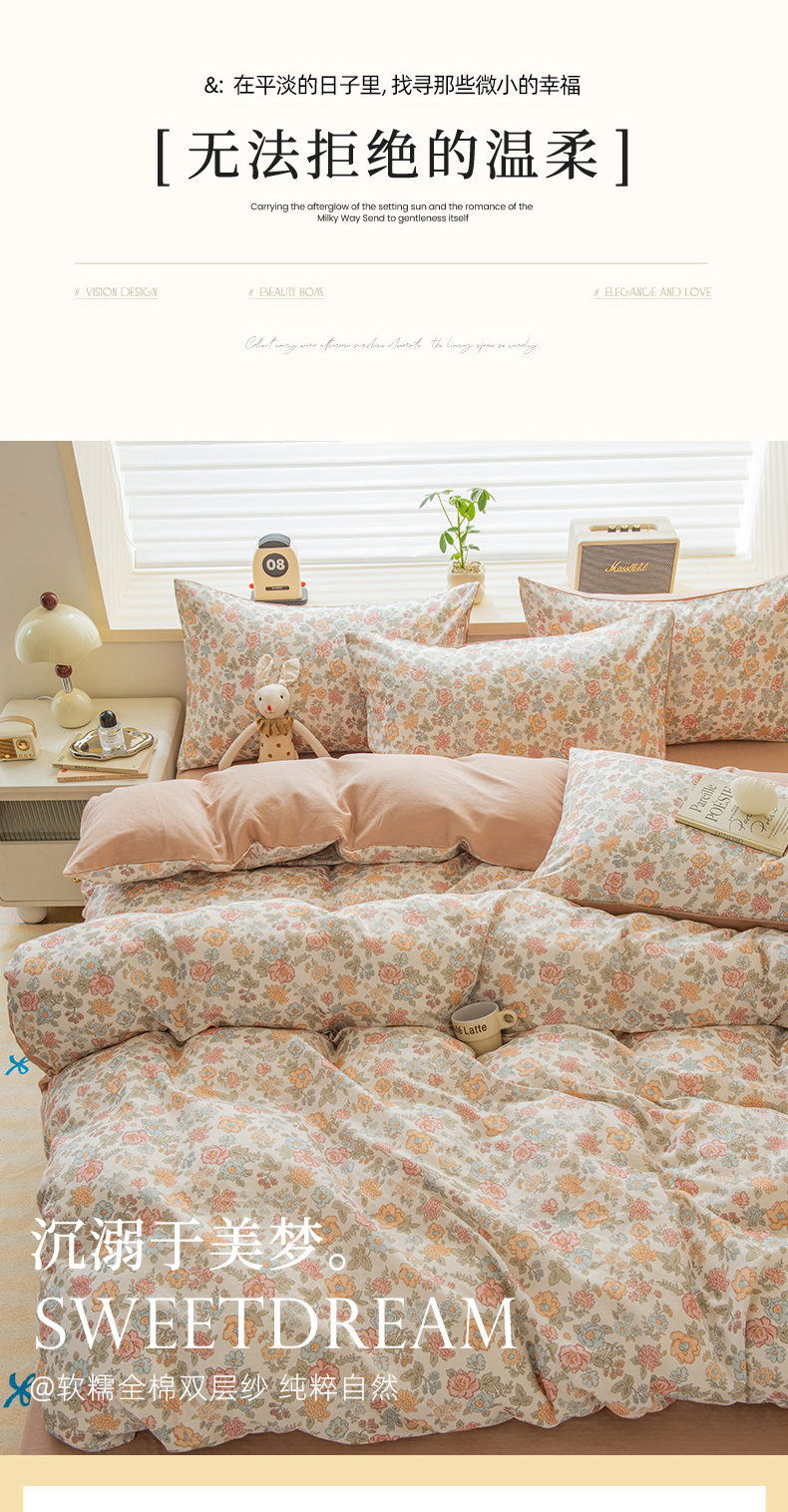 商品名称:(总)雯雨家纺 2026春夏新款A类全棉有氧双层纱印花简约款四件套