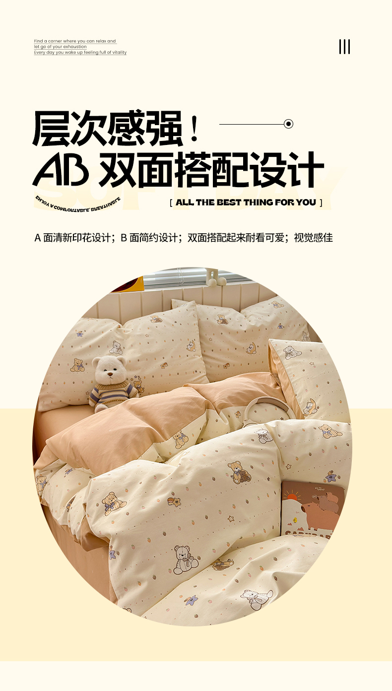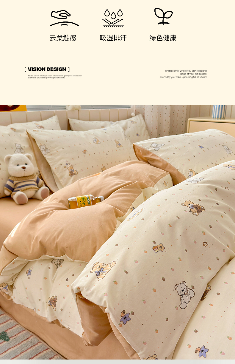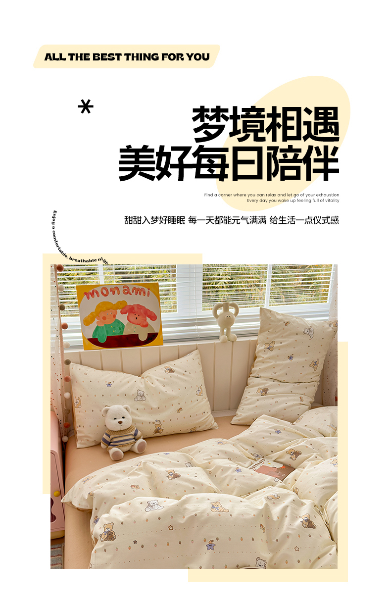 当前位置: 91家纺网 > 商品网购 > 床品套件 > 四件套 > 全棉普通四件套 > 清雅福 2026春夏新款INS小清新40支全棉13372四件套第二批 星星布偶