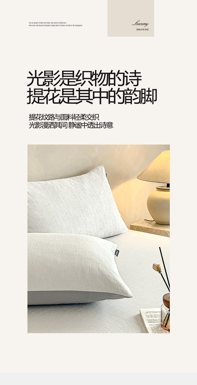 (总)涵宸家纺 2026新款全棉提花里拉系列四件套,柏拉-白,花夕-粉,凌维-灰,凌维-绿,律动格韵,千喜格,沁语-粉金,沁语-奶白,沁语-紫,山慕色,甜心漾,微芒,雾絮-灰,雾絮-奶白,毓影-豆沙,毓影-奶白,云暖-粉,云暖-紫,织羽