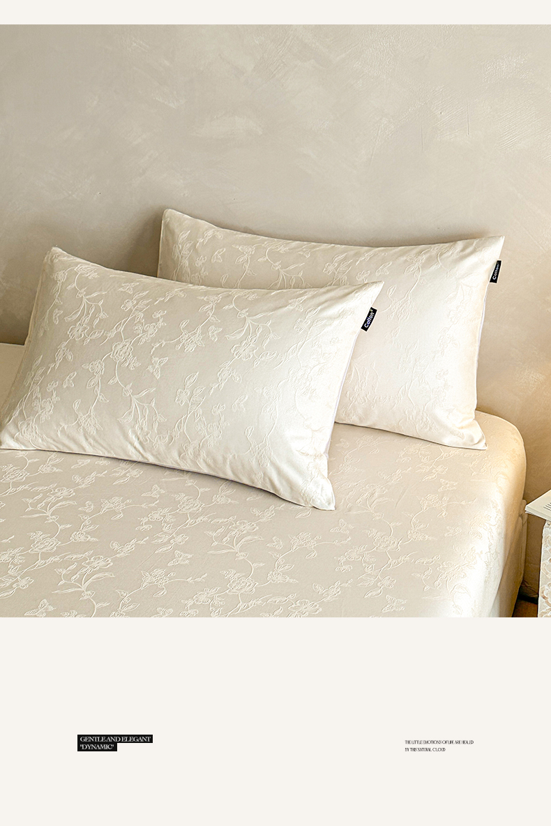 涵宸家纺 2026新款全棉提花里拉系列单枕套 枕套-毓影-奶白