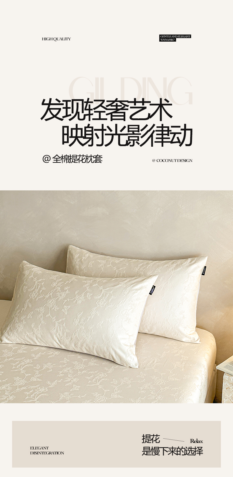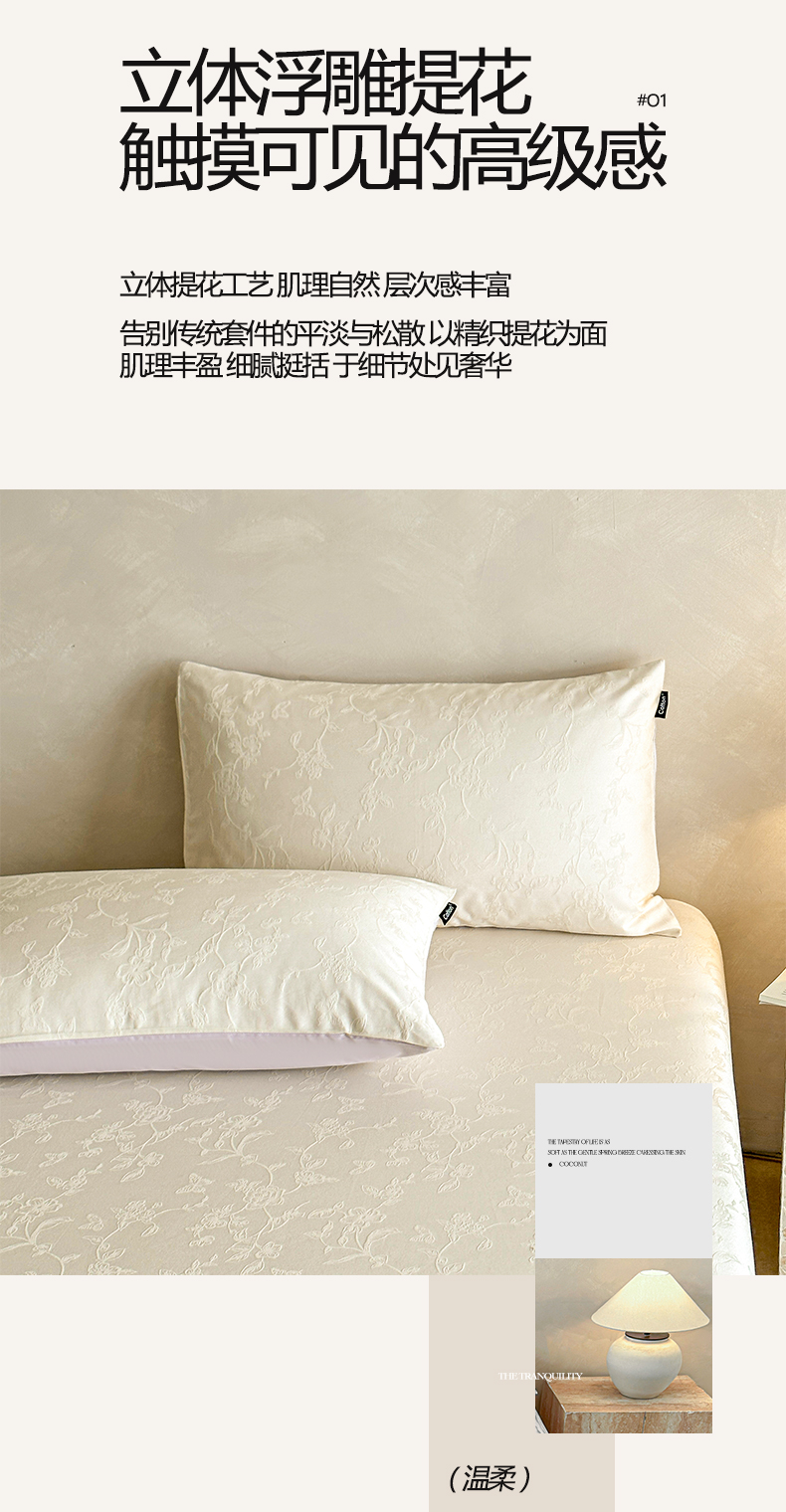 商品名称:涵宸家纺 2026新款全棉提花里拉系列单枕套 枕套-毓影-奶白
