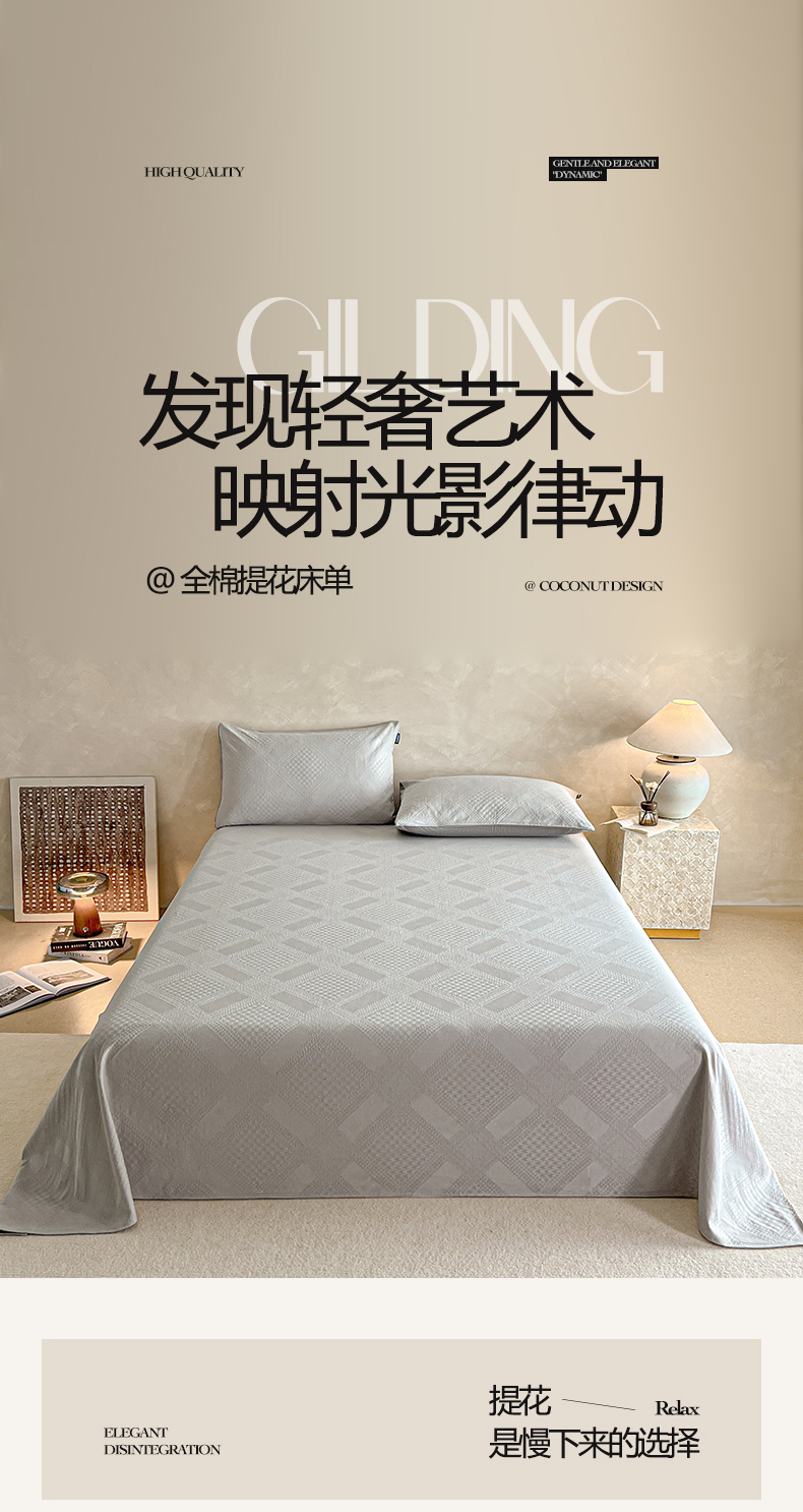 当前位置: 91家纺网 > 商品网购 > 床上用品 > 床单 > 涵宸家纺 2026新款全棉提花里拉系列单床单 床单-千喜格