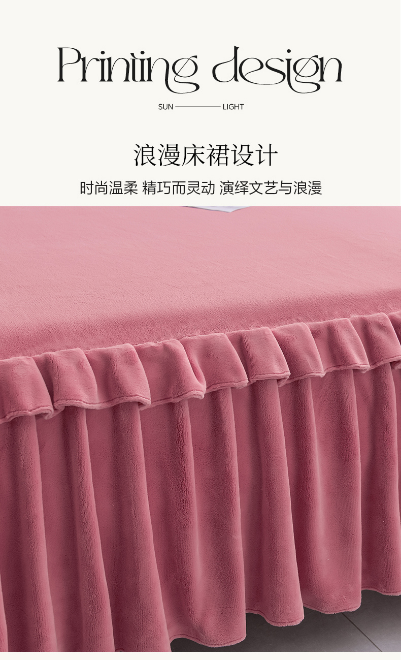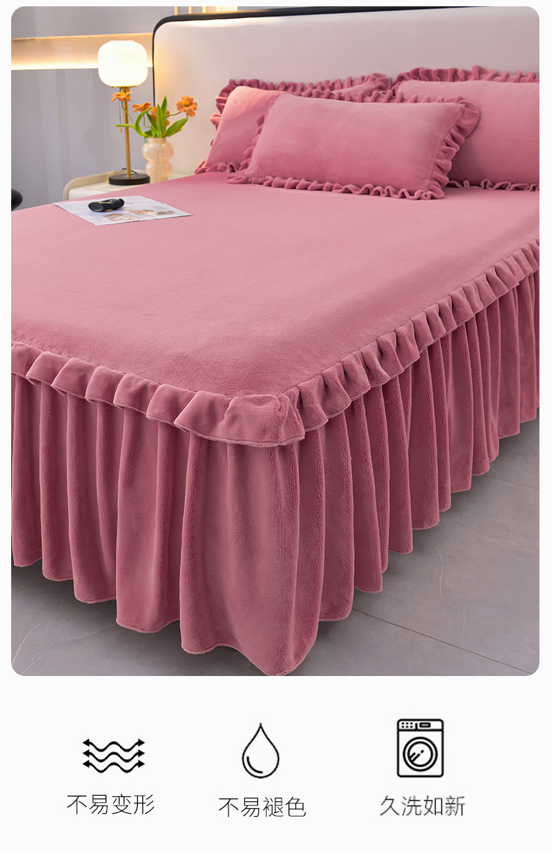 商品名称:优家居工厂店 2026新款纯色韩版花边牛奶绒床裙床罩加厚直播外贸可定做 盛世-豆沙