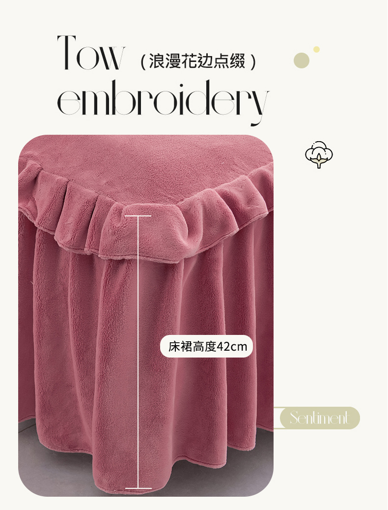 (总)优家居工厂店 2026新款240克高克重牛奶绒单件床裙韩版刺绣花牛奶绒床裙三件套,安娜-橙色,安娜-豆沙,安娜-灰色,安娜-浅粉,安娜-浅蓝,安娜-紫色