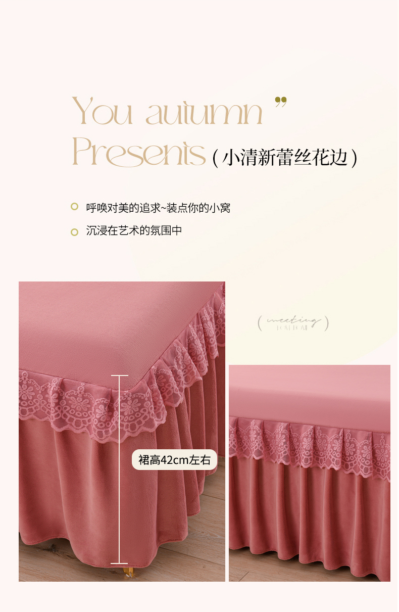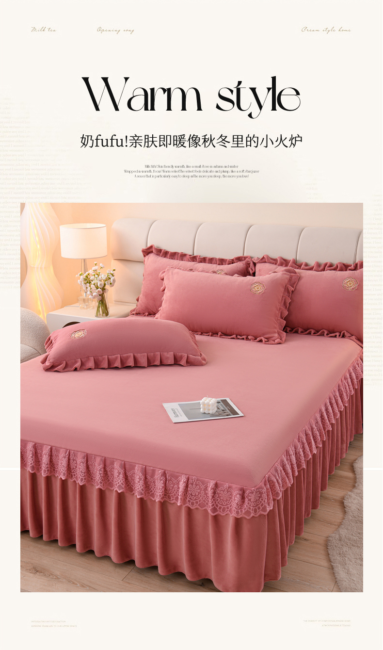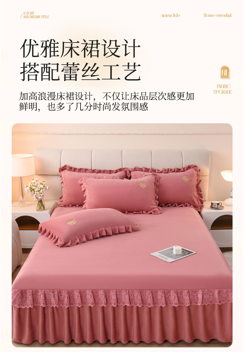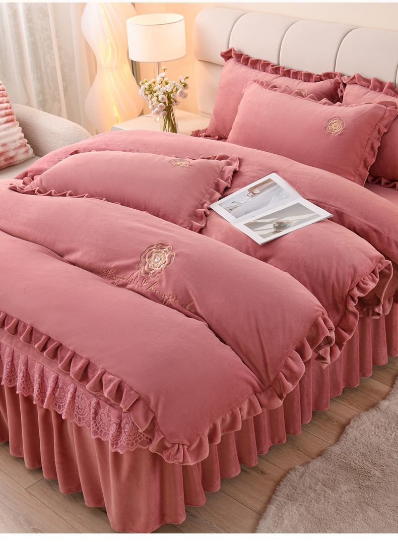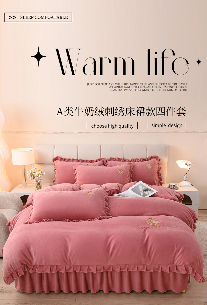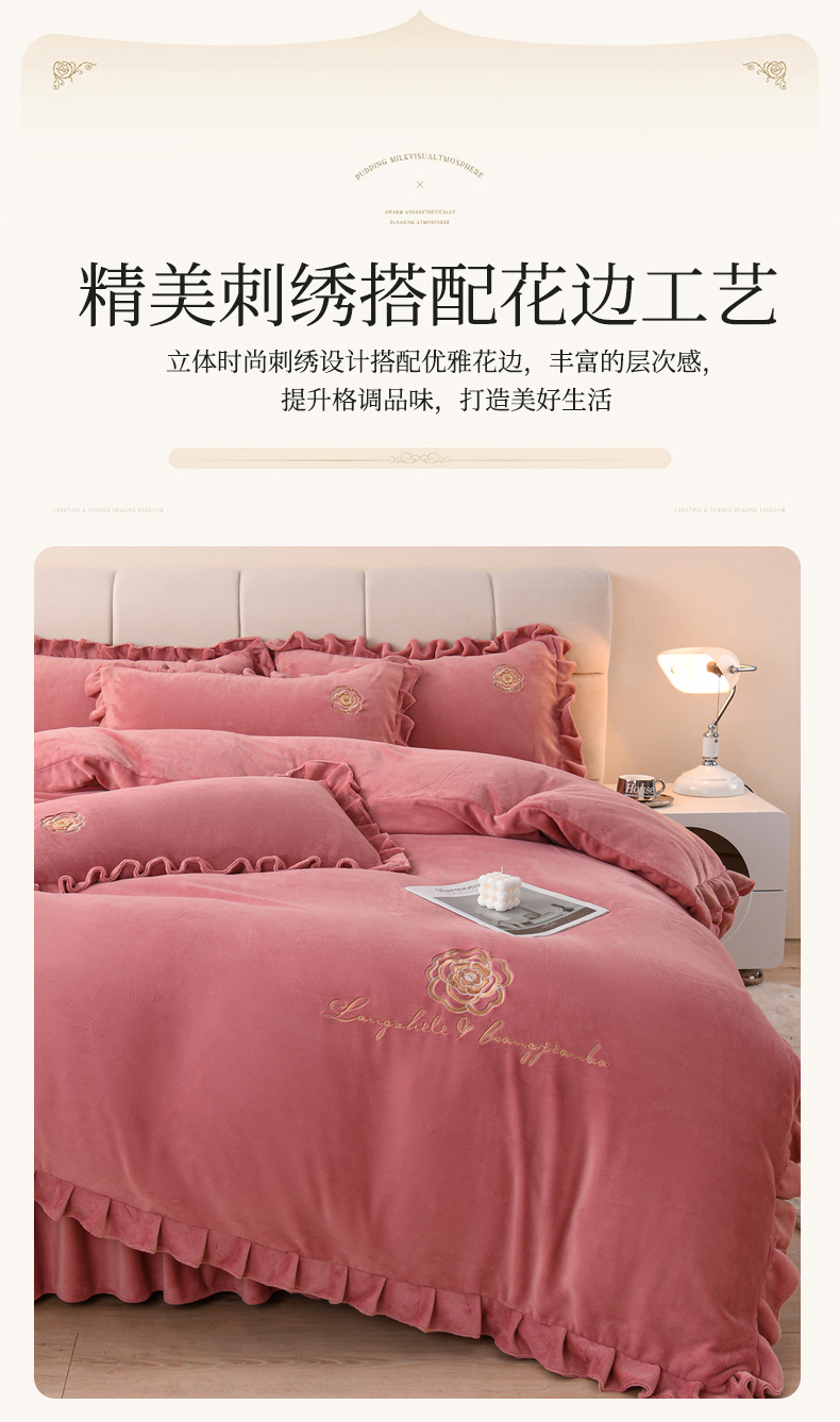 当前位置: 91家纺网 > 商品网购 > 床品套件 > 四件套 > 牛奶绒四件套 > 优家居工厂店 2026新款240克高克重牛奶绒韩版刺绣花牛奶绒床裙四件套床裙三件套 安娜-豆沙