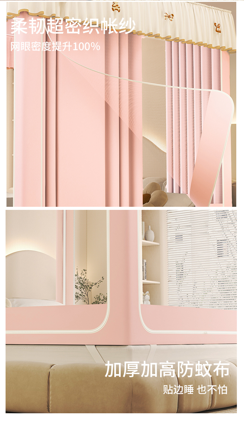 当前位置: 91家纺网 > 商品网购 > 床上用品 > 蚊帐 > 初心家纺 2026新款时尚ins拉链式防摔坐床 床帘款遮光蚊帐 粉玉(带帘)