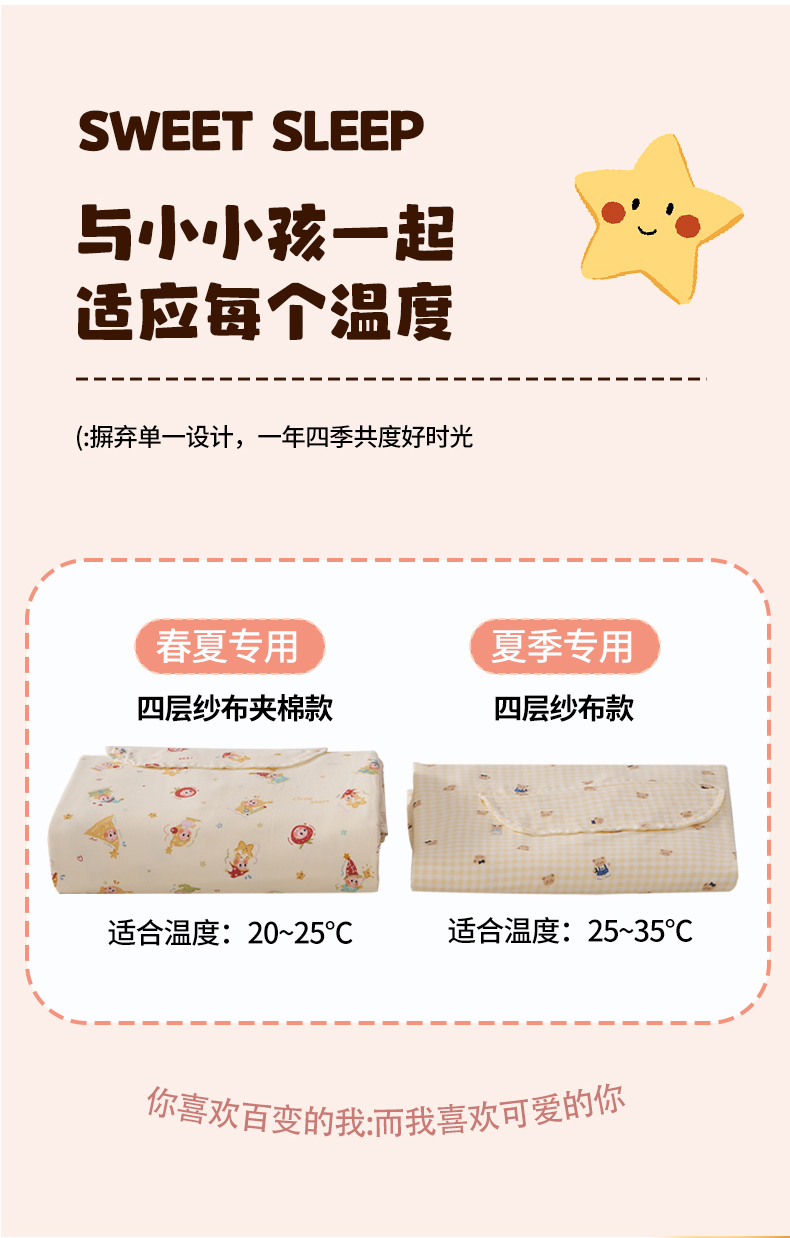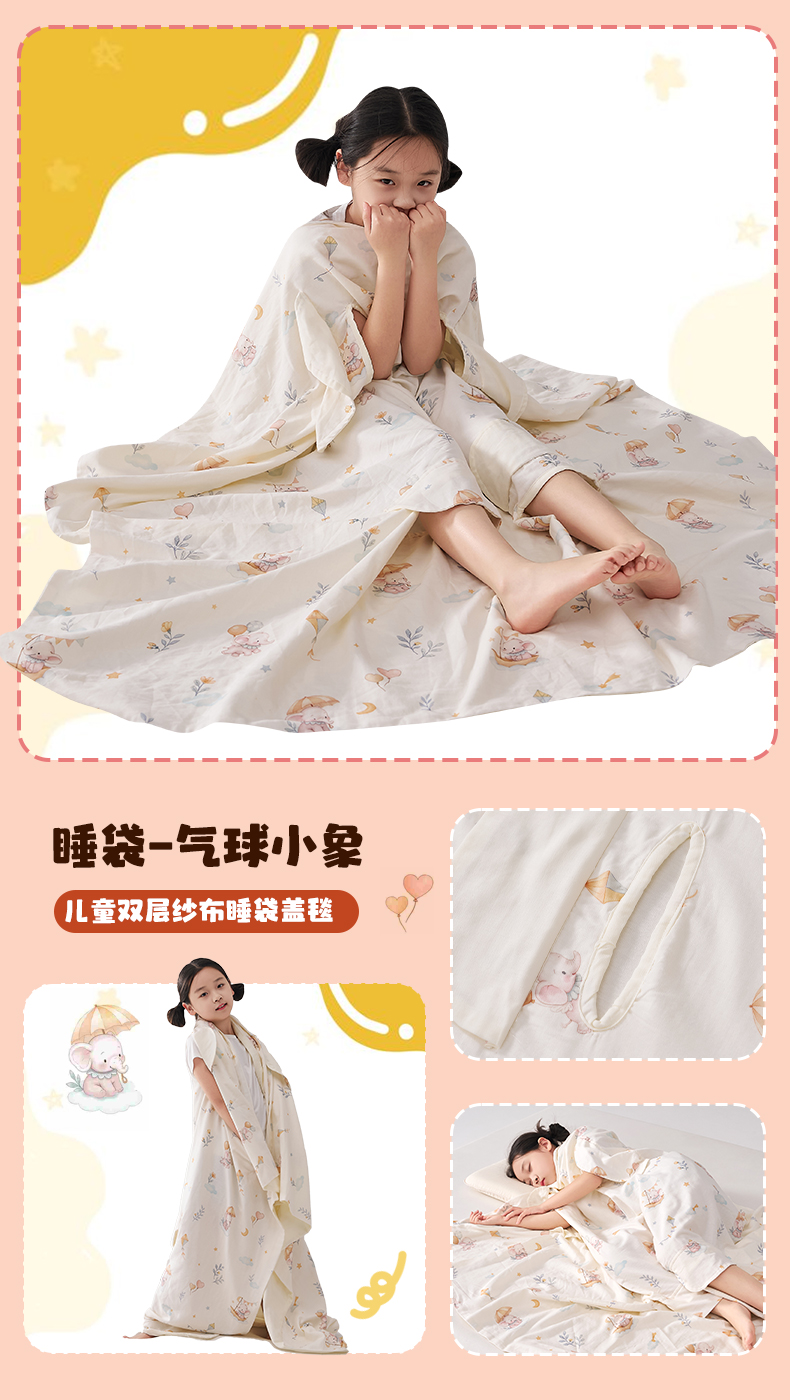 (总)暖阳 2026新款儿童双层纱布睡袋盖毯