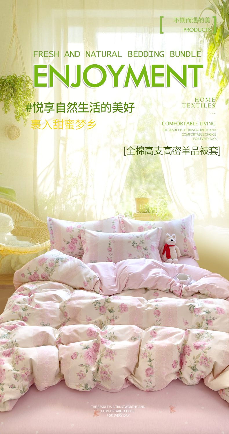 商品名称:洺兰家居 2026新款全棉纯棉13070小清新印花单被套被套单件 伊春园