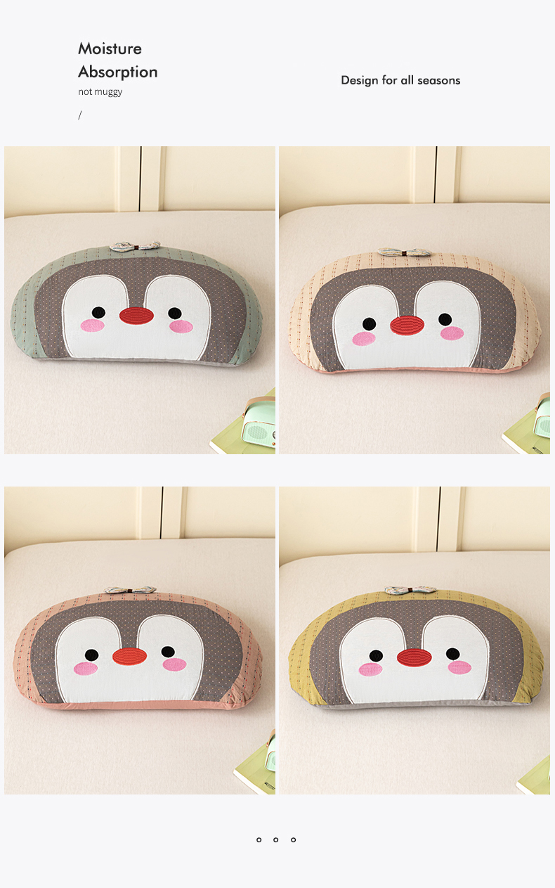 (总)卓昌枕芯 2026新款全棉卡通小企鹅荞麦枕可拆洗枕头枕芯,组合图仅供展示不可下单,企鹅 -粉,企鹅 -黄,企鹅 -卡其,企鹅 -绿