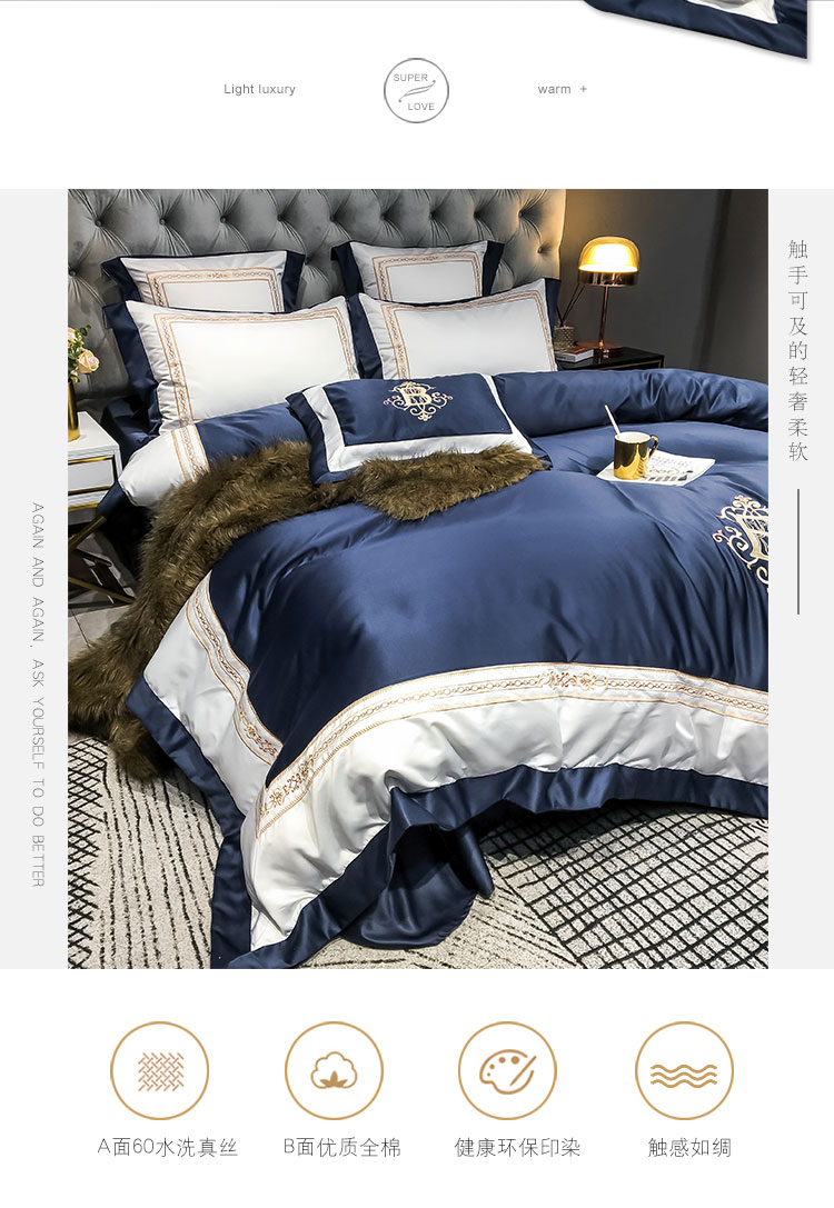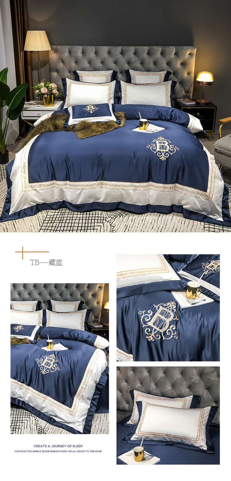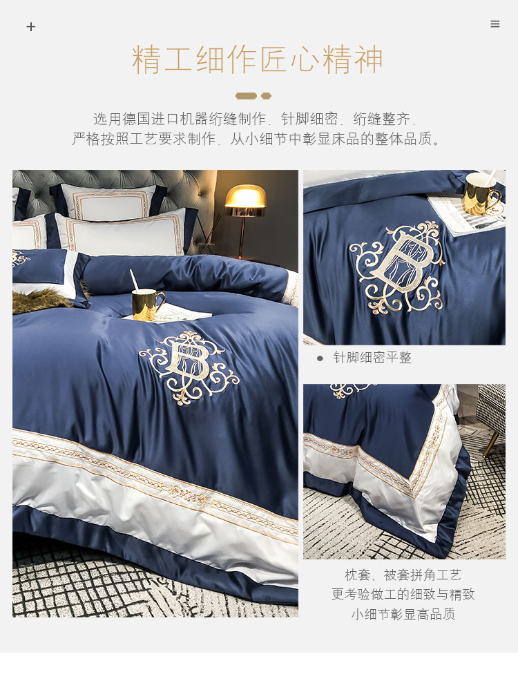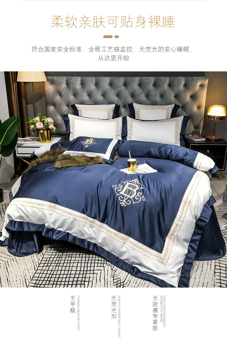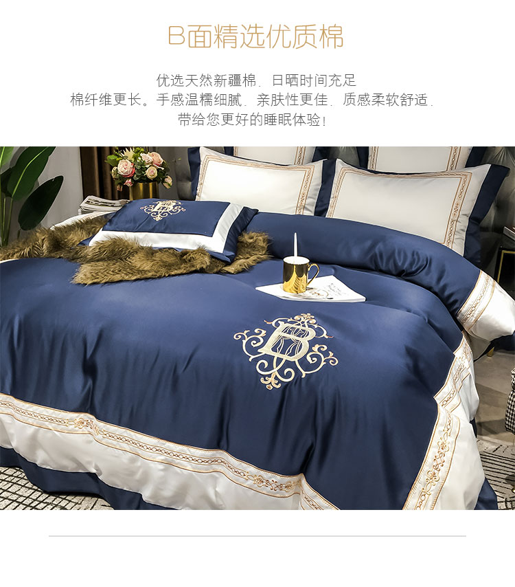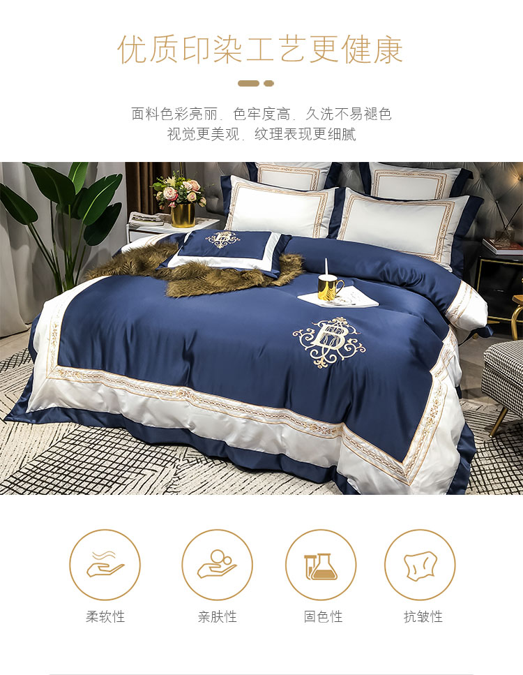 安妮家居 2020新款TB大牌风贡缎全棉四件套影棚图 藏蓝