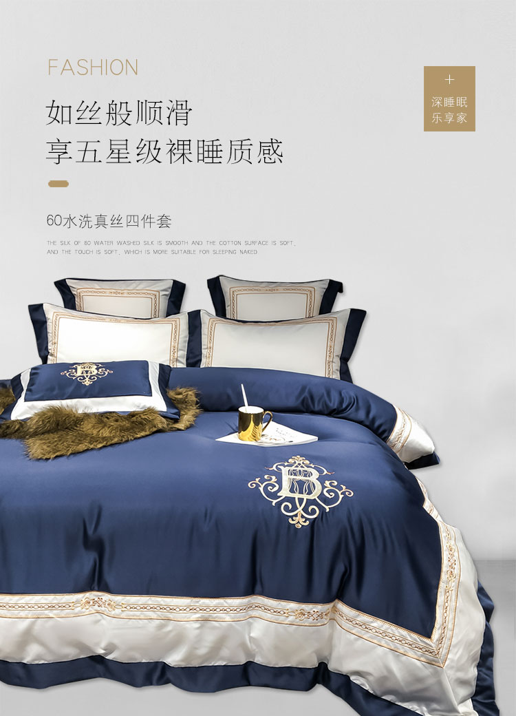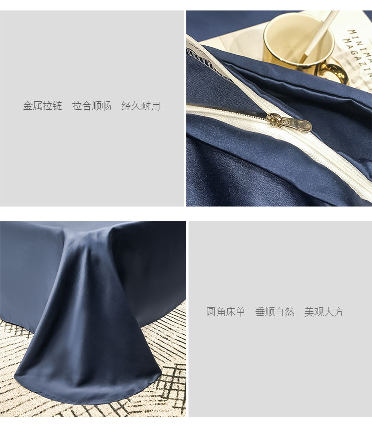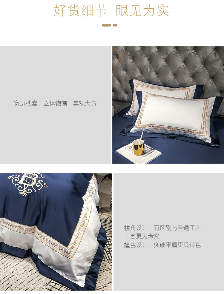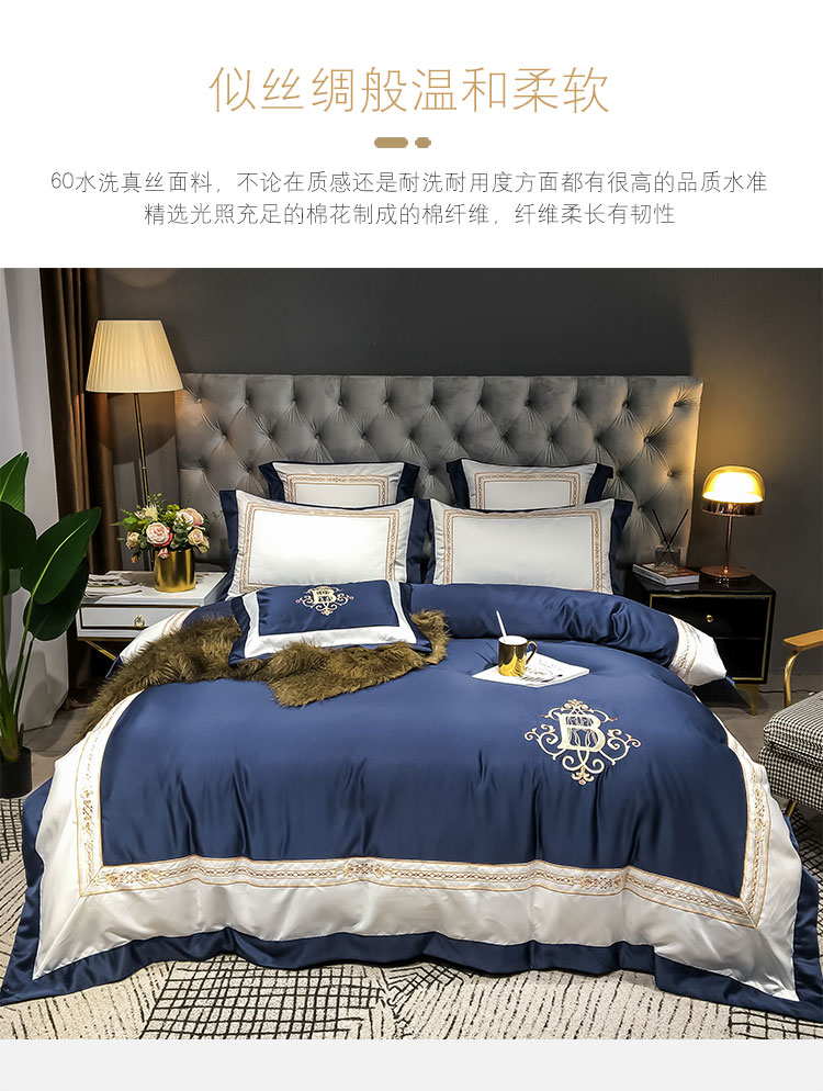商品名称:安妮家居 2020新款TB大牌风贡缎全棉四件套影棚图 藏蓝