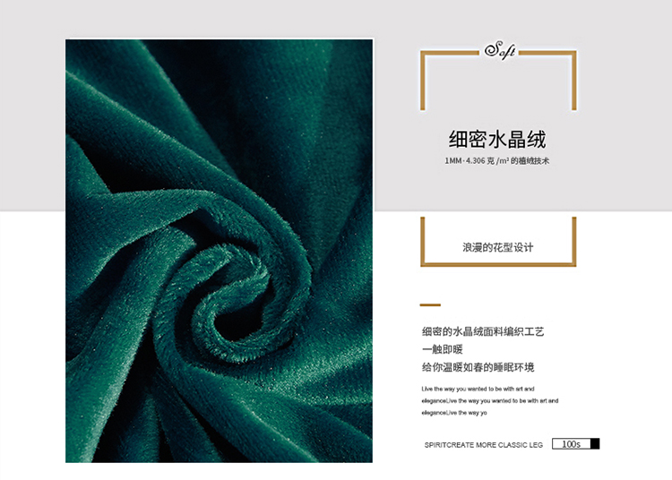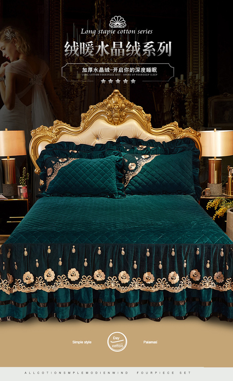 商品名称:瑞宝 2025新款水晶绒夹棉米拉花园系列单品床裙 孔雀绿