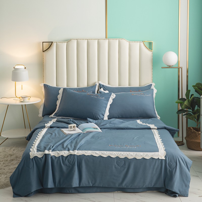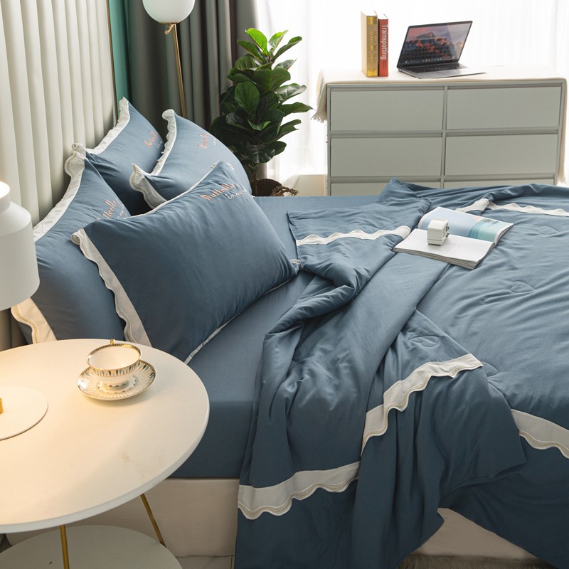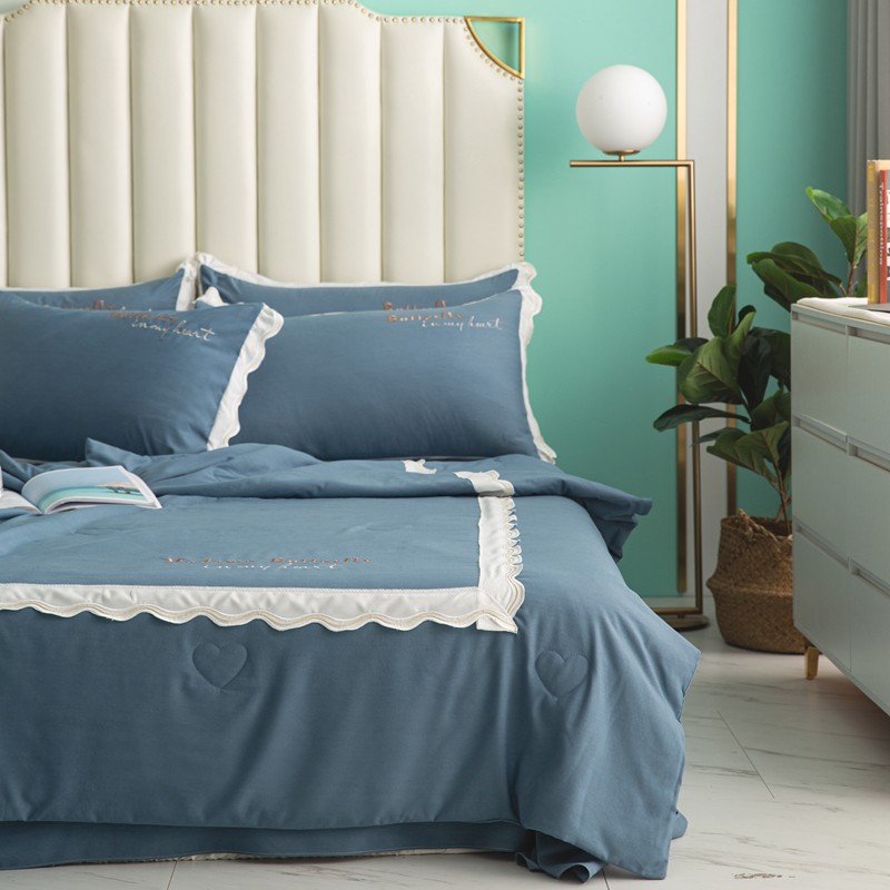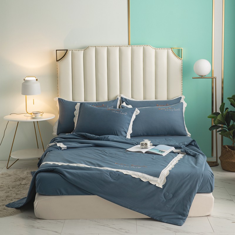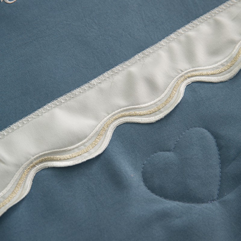 安妮家居 2021新款法式仙女风水洗刺绣夏被四件套 星空蓝