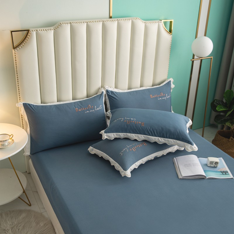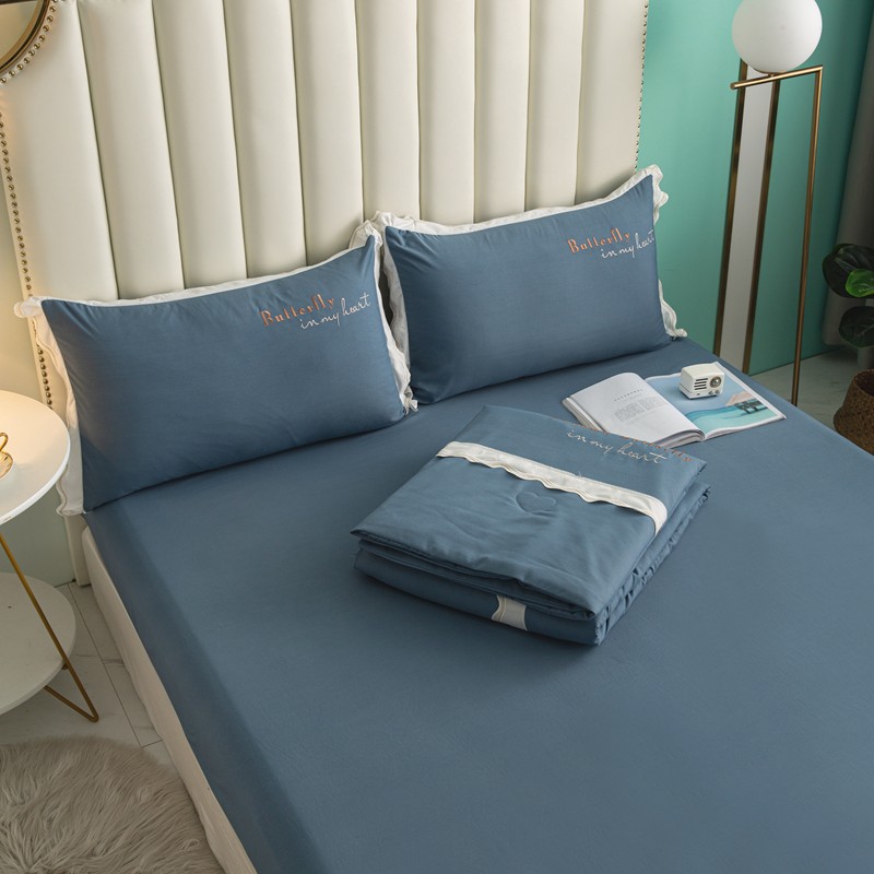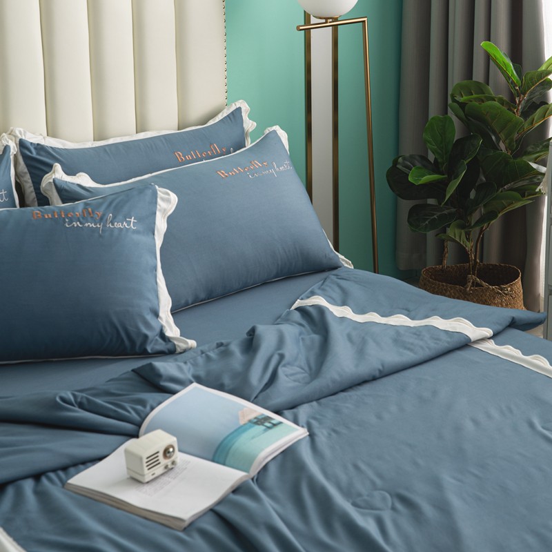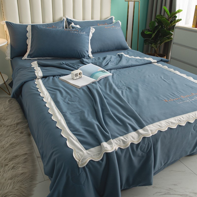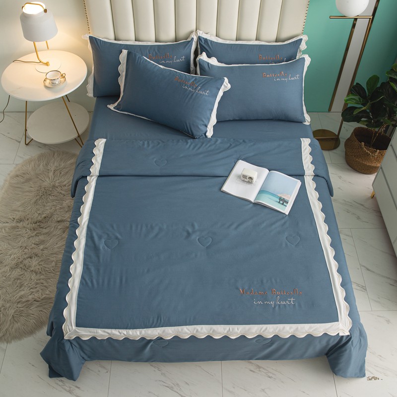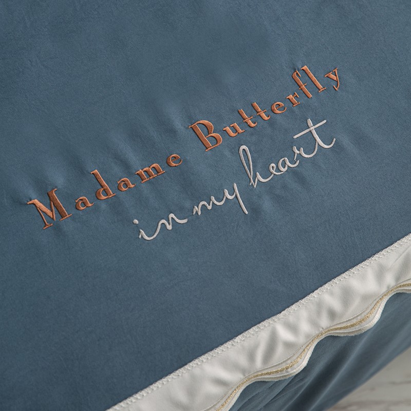 安妮家居 2021新款法式仙女风水洗刺绣夏被四件套 星空蓝