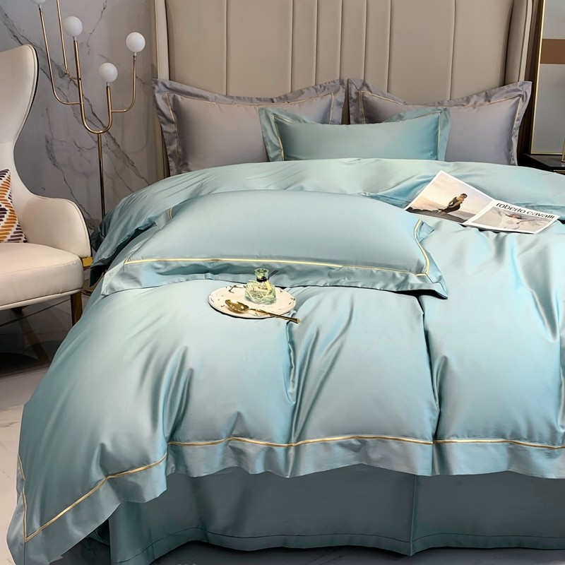 榻尚家居2021新款长绒棉简约轻奢四件套 魅-湖水绿