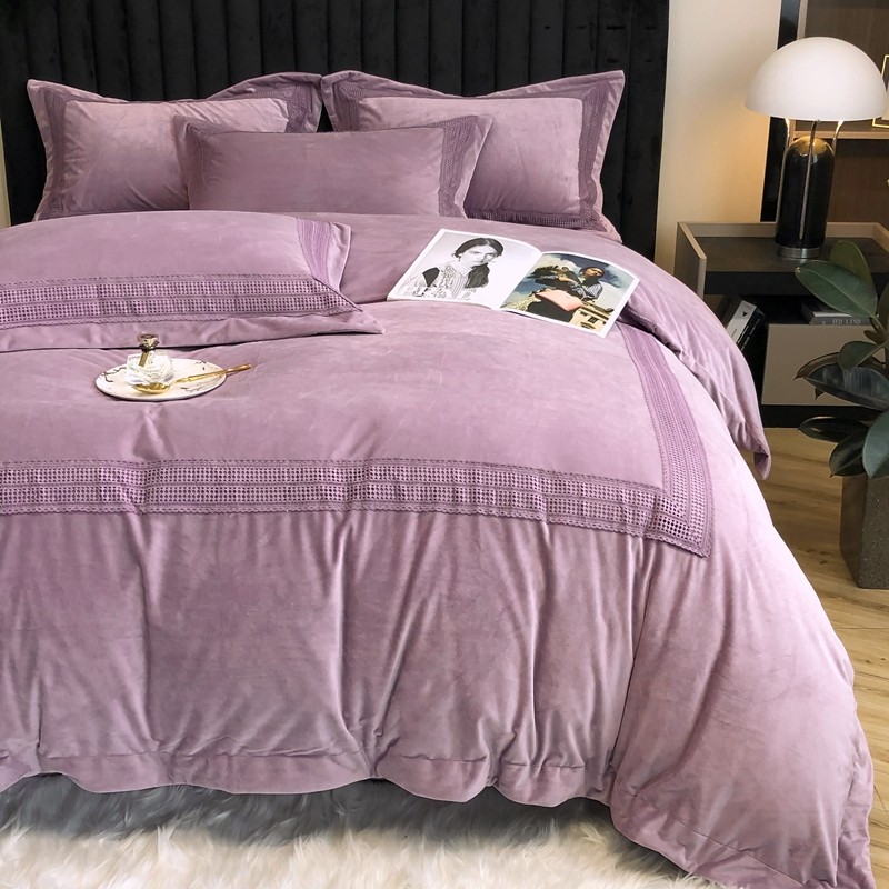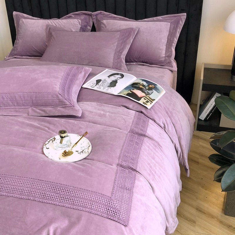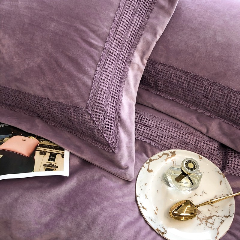 榻尚 2021新款柔肤绒花边款四件套遇见系列 紫