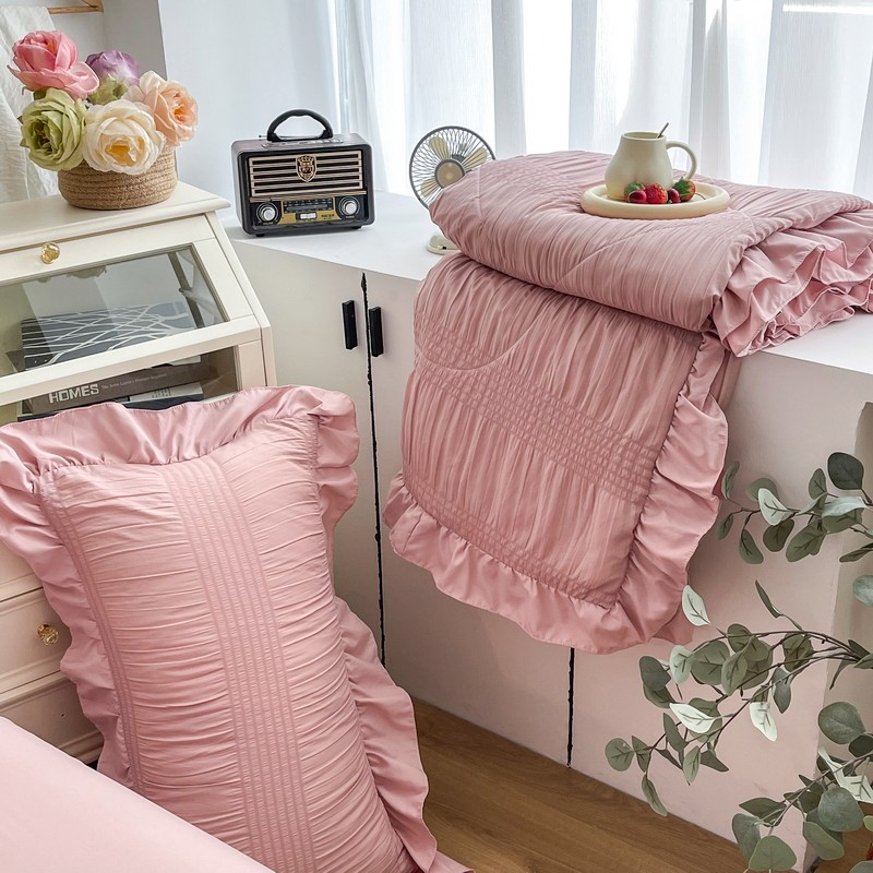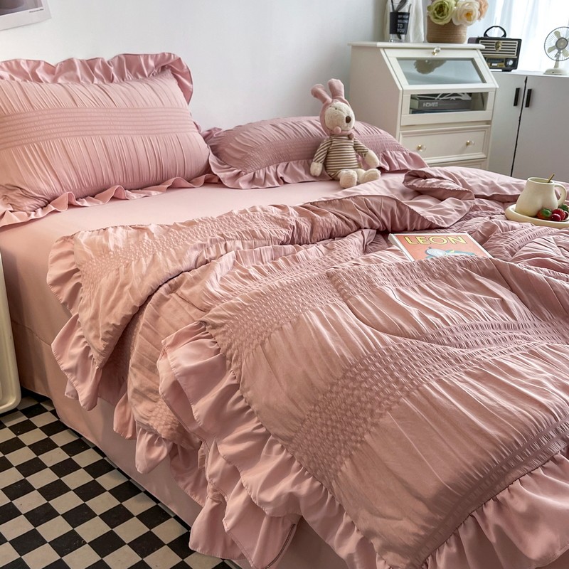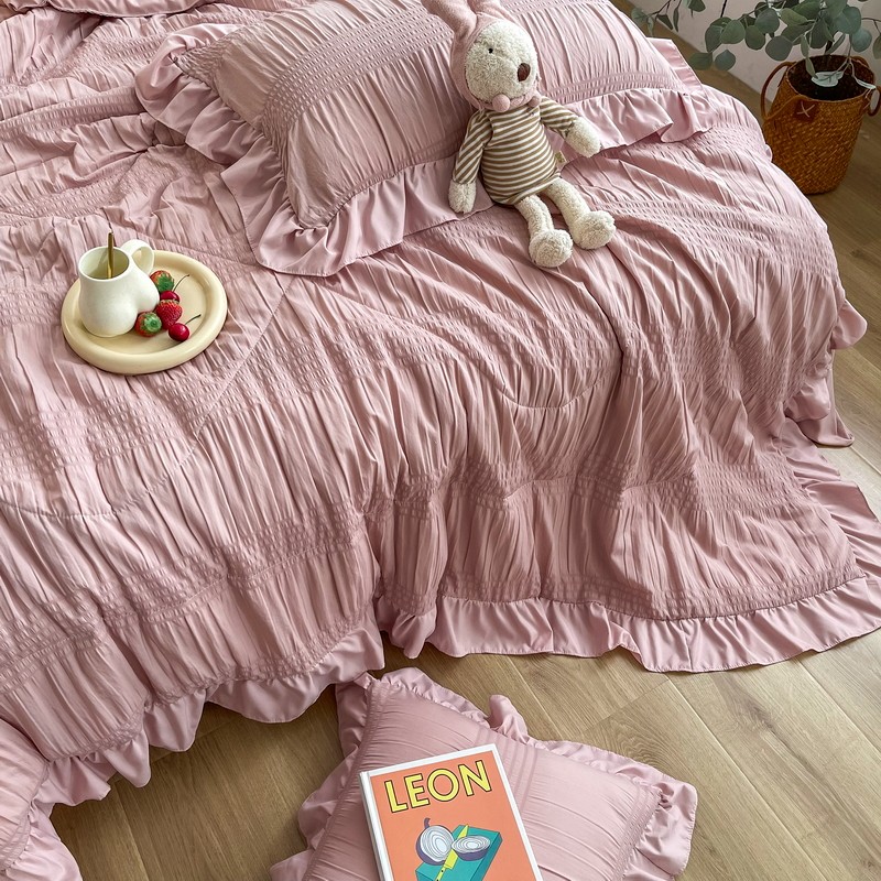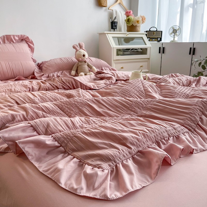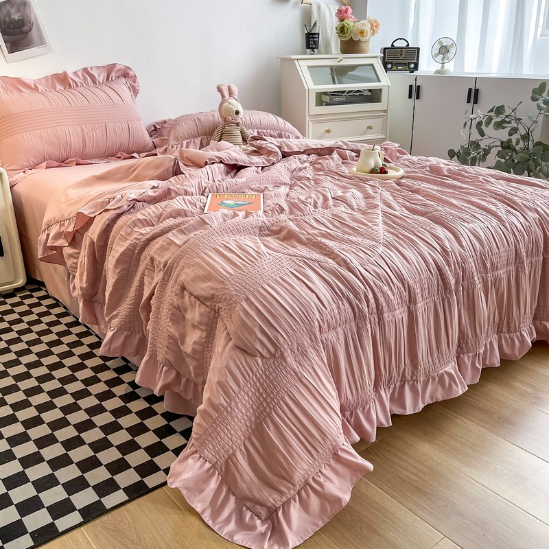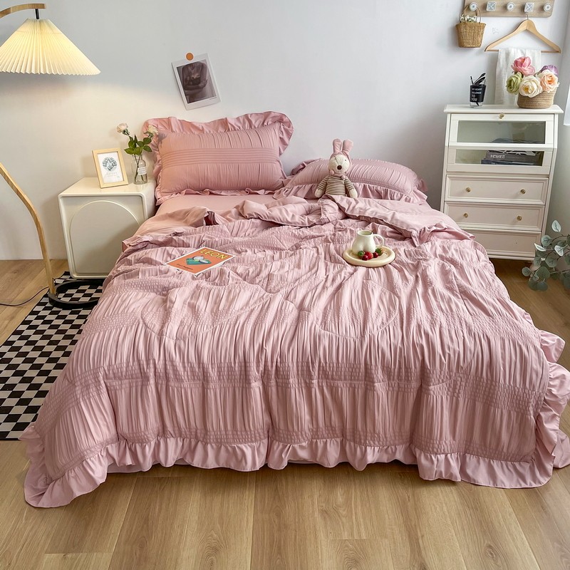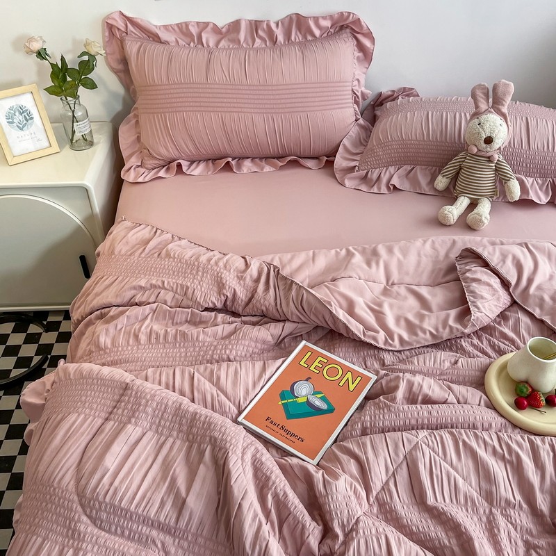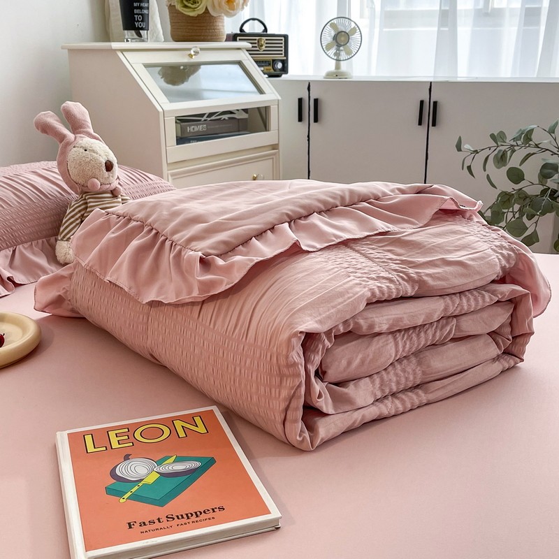 仟网汇 2022新款雪纺边泡泡纱夏被四件套 豆沙色
