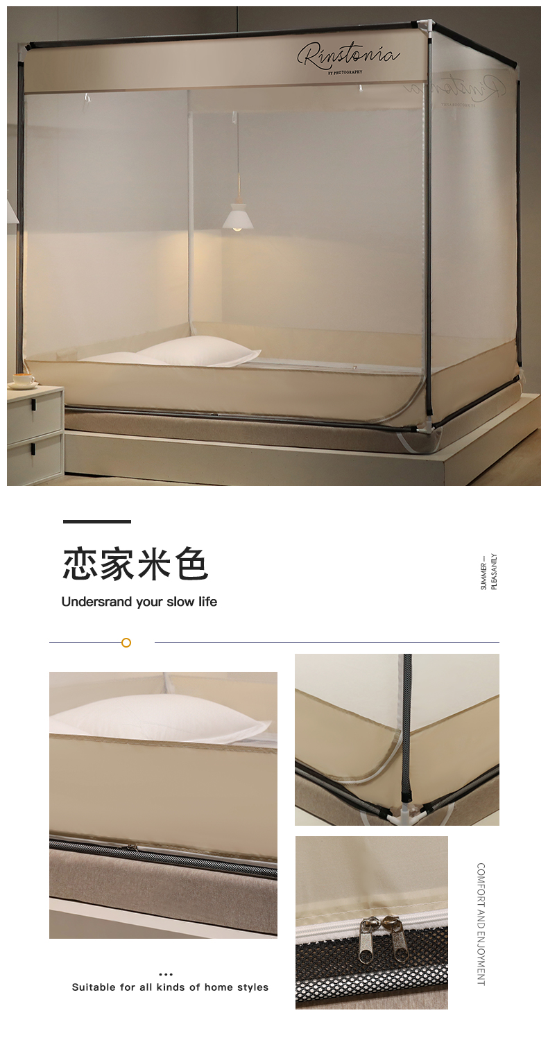 当前位置: 91家纺网 > 商品网购 > 床上用品 > 蚊帐 > 坐床式蚊帐 > 佳梦家纺 2023新款方顶印花坐床蚊帐 恋家-米色