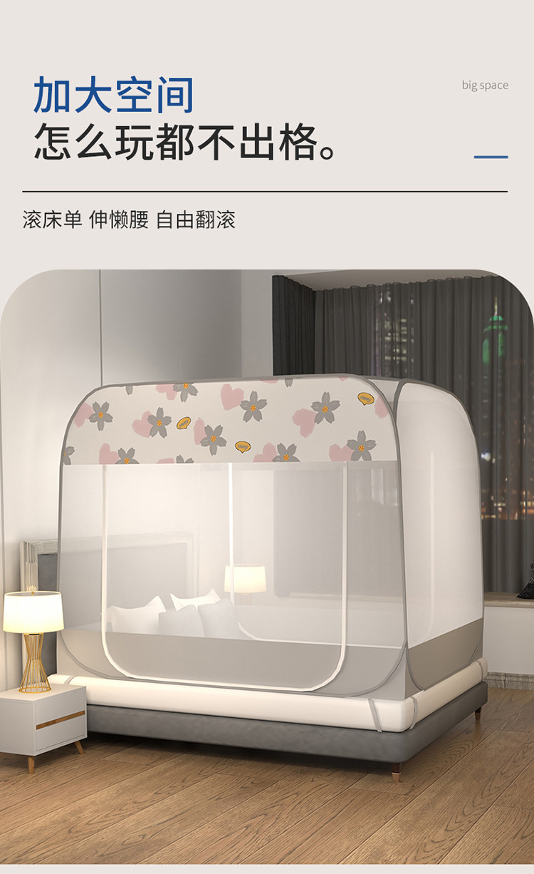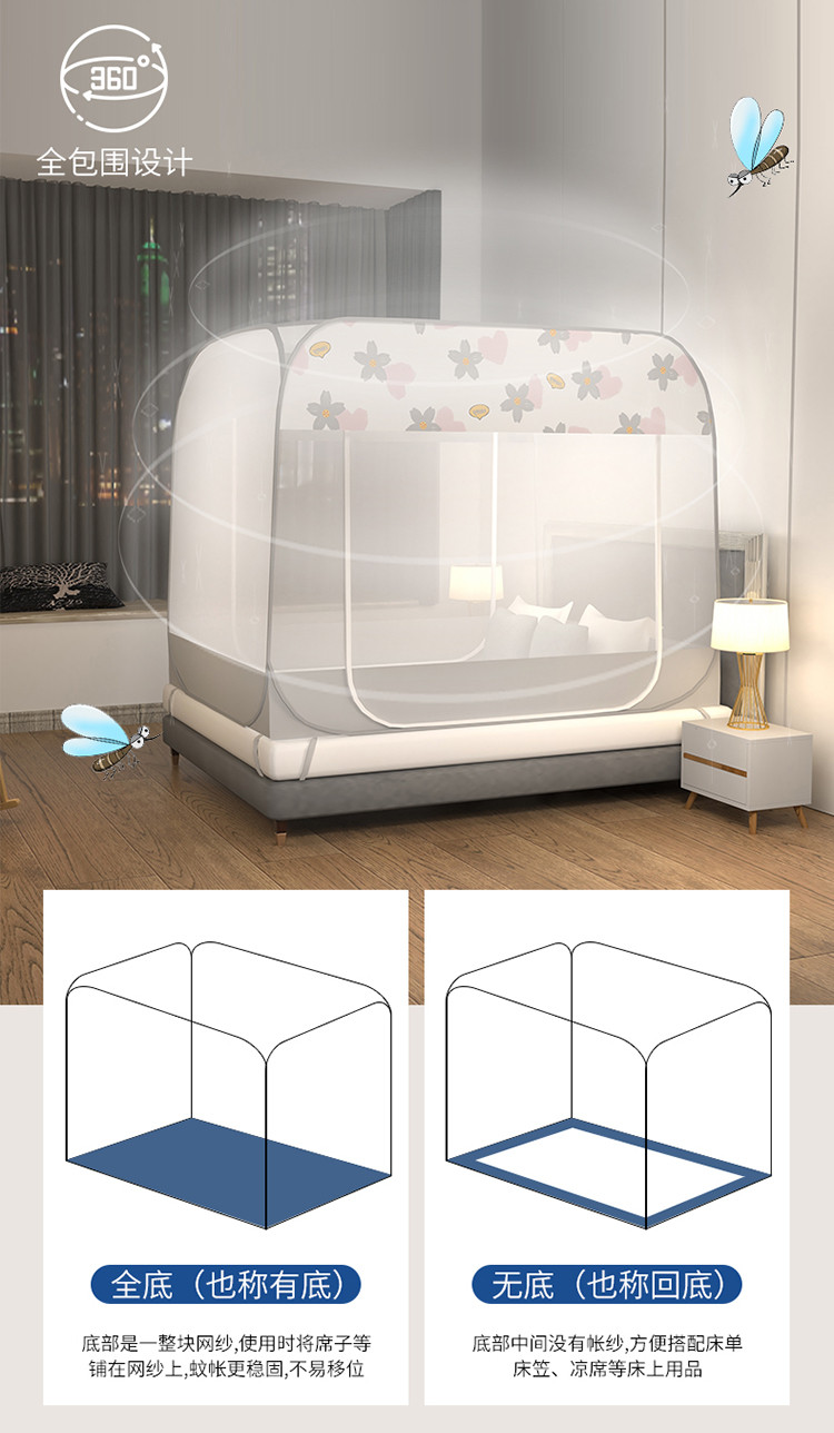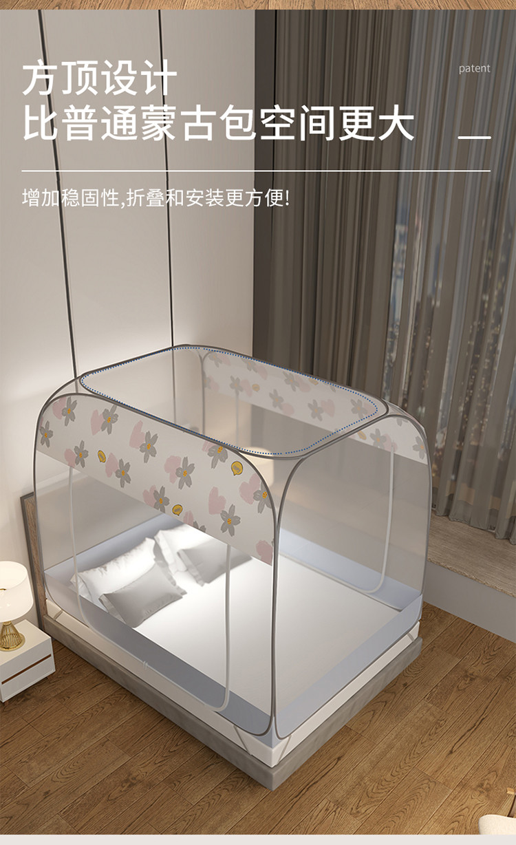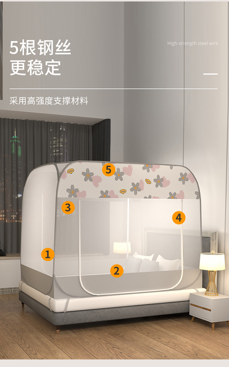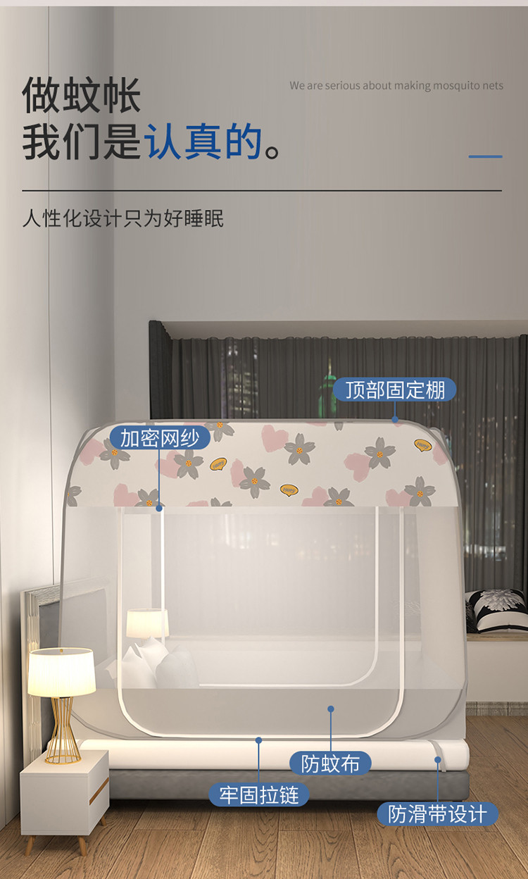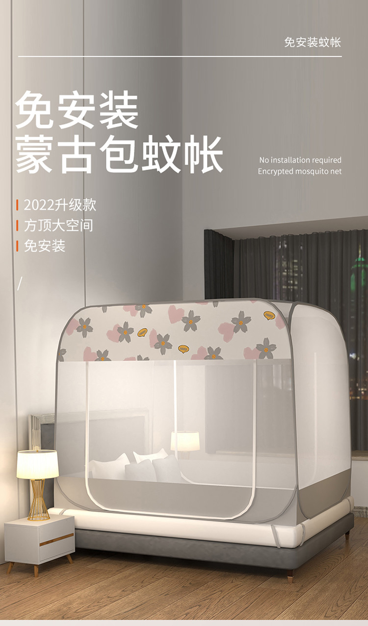 商品名称:佳梦家纺 2023新款印花时尚款免安装蒙古包蚊帐 心动灰布三角